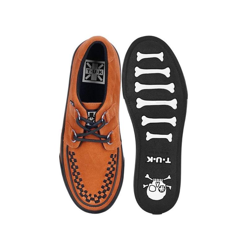 Footwear that keeps up with your fast paced life. Creeper Sneakers are known for their style, but they also deliver comfort with a memory foam insole and lightly padded tongue. Features one of our crowd-pleasing upper styles of burnt orange cow suede with classic D-rings & iconic interlace detailing along the front. These sneakers bring you everyday wearability with a clean style.