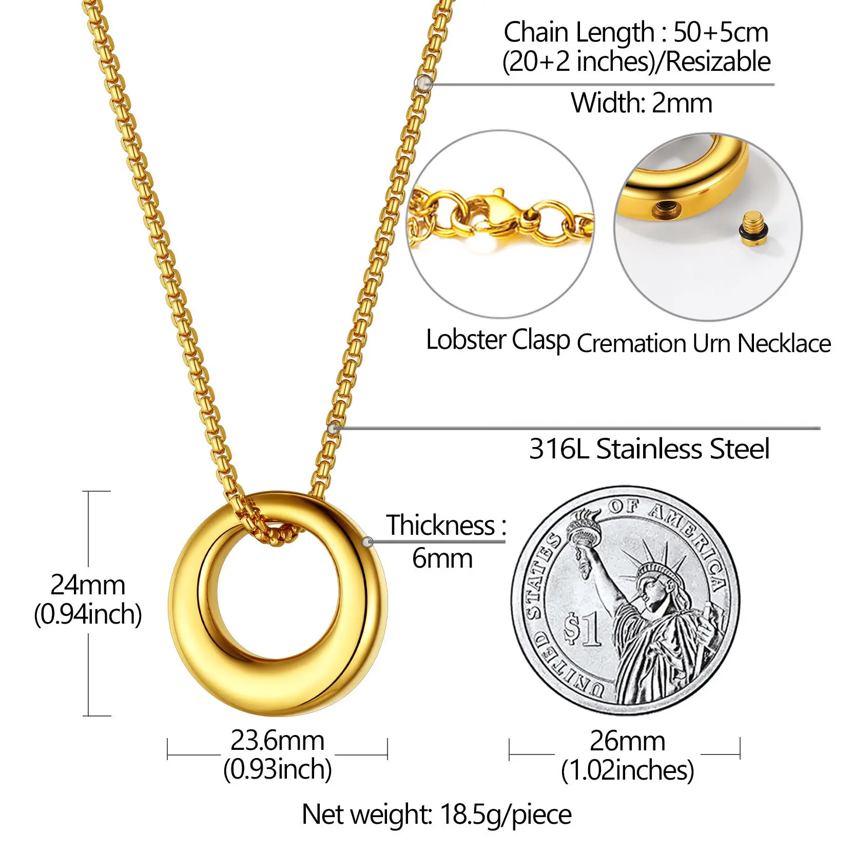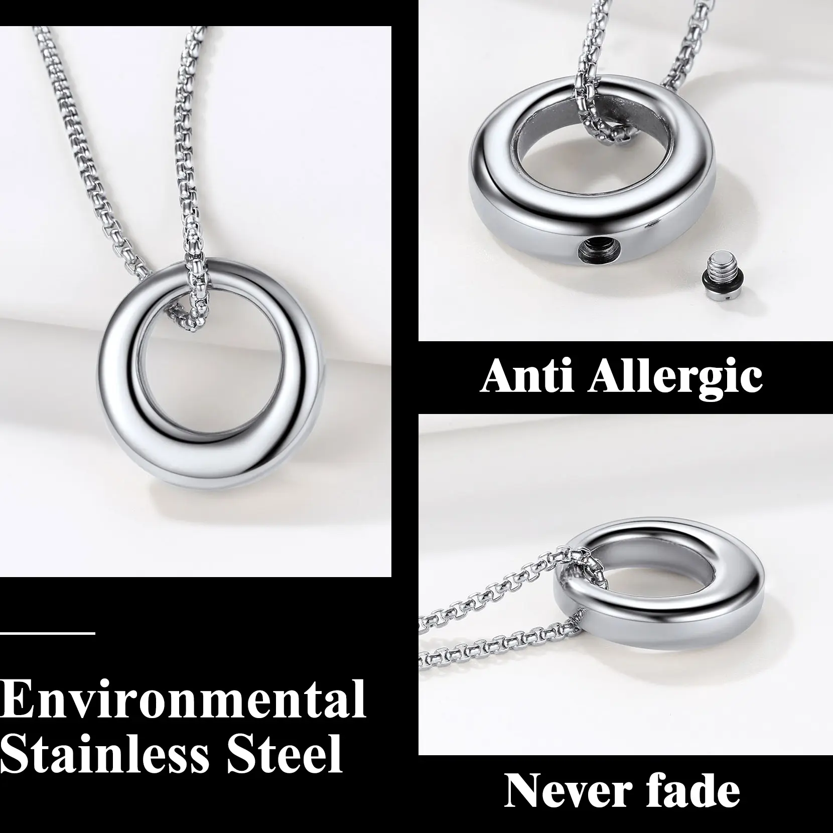 FindChic Circle Of Life Round Urn Pendant Necklace for Ashes Cremation Jewelry Memorial Jewelry Keepsakes Unisex For Women Men Come with Gift Box