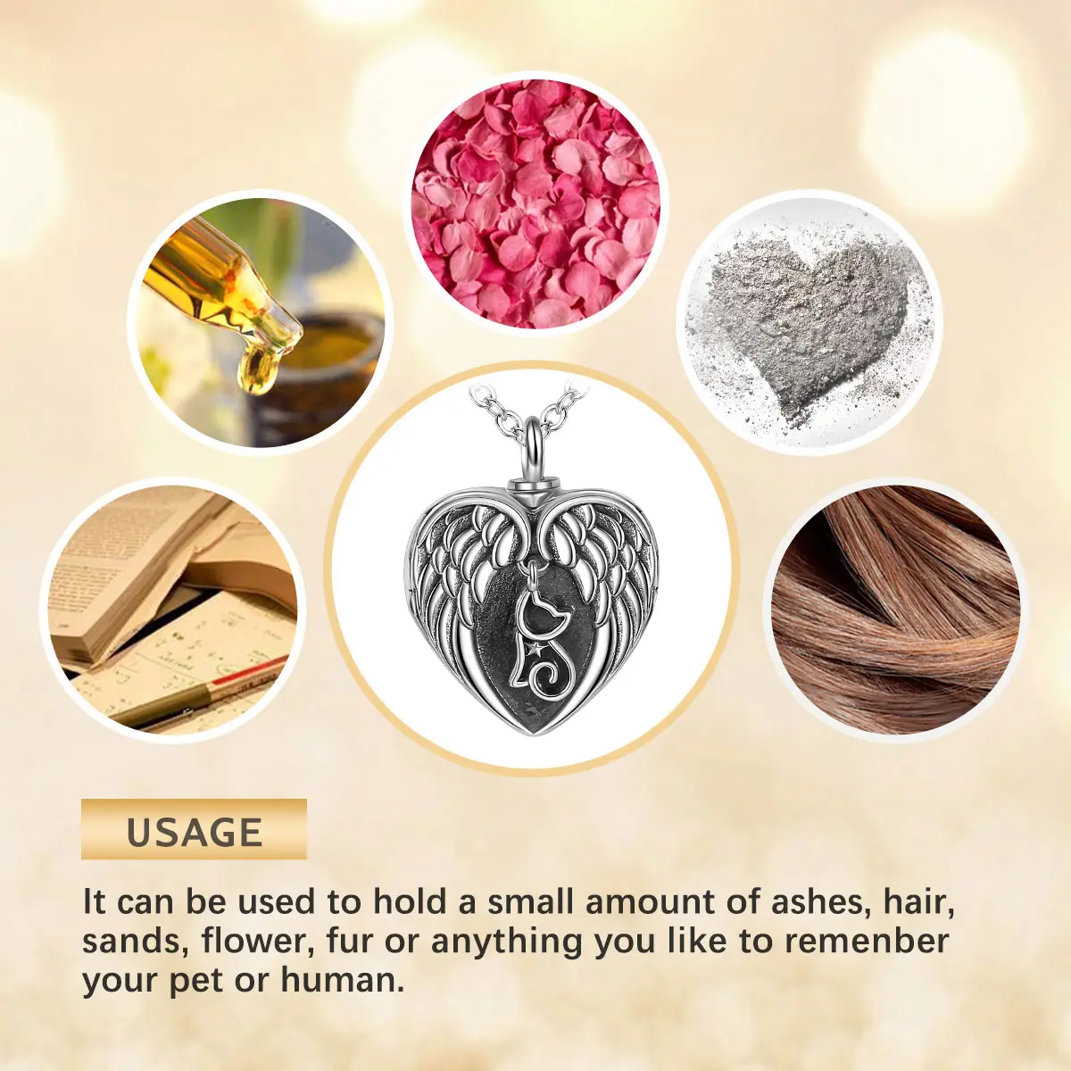 [Very Safe & Firm Screw-tight Cap] You can carry your loved one or pet wherever you go. It’s easy to use with an included funnel and secure screw-tight cap that won’t budge. It could hold ashes, hair, small amount of dried flowers, perfume, cremains and so on.