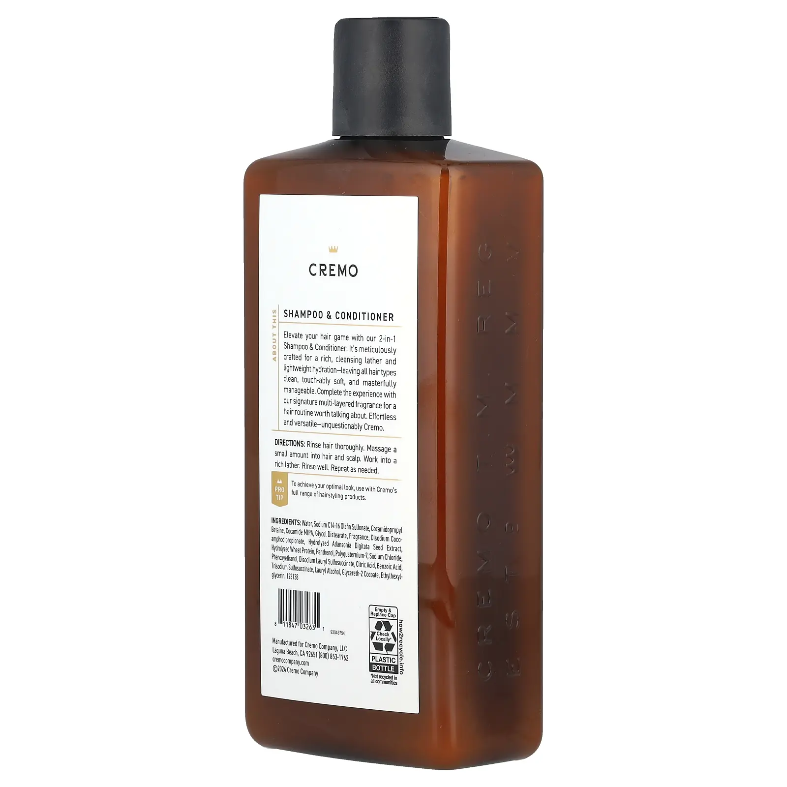 Cremo 2 In 1 Shampoo & Conditioner, Bourbon & Oak, 16 fl oz (473 ml)