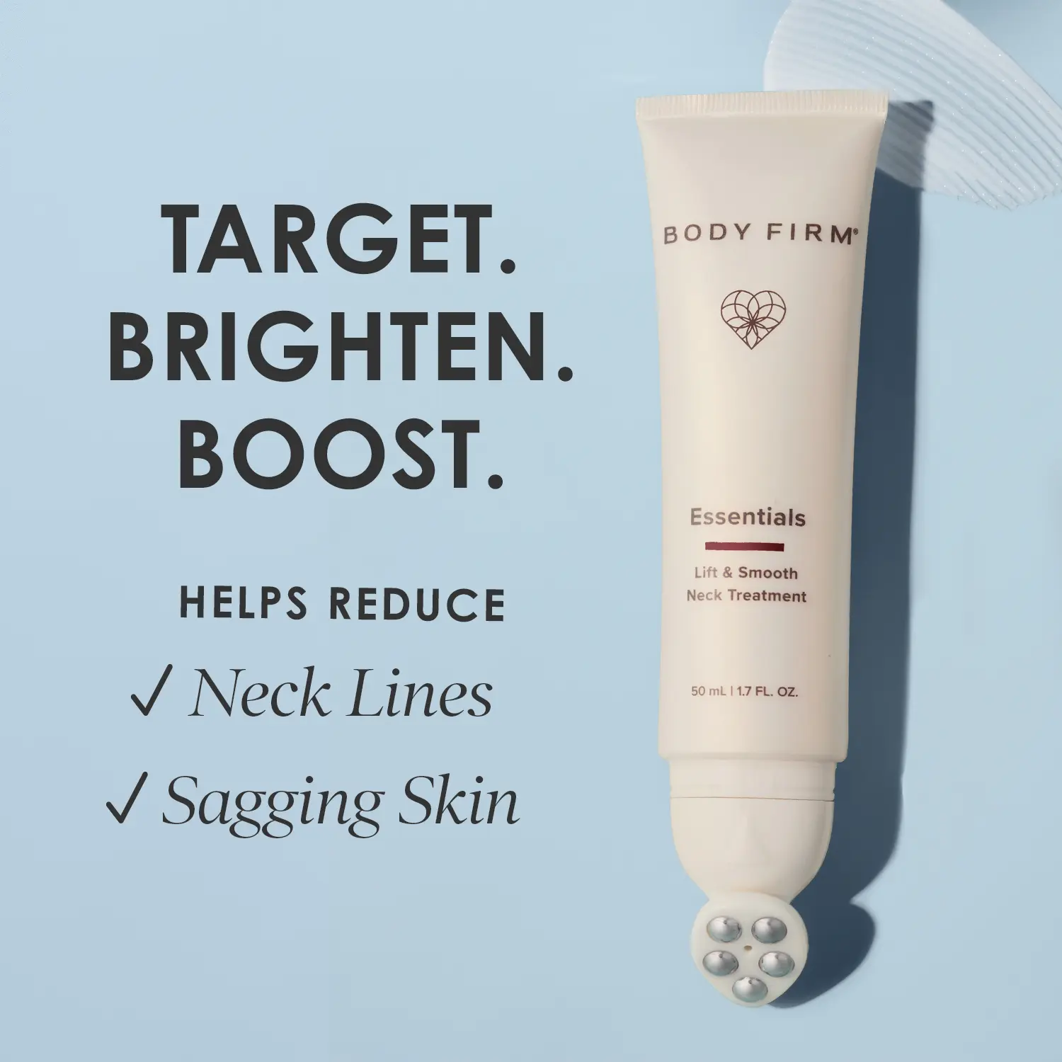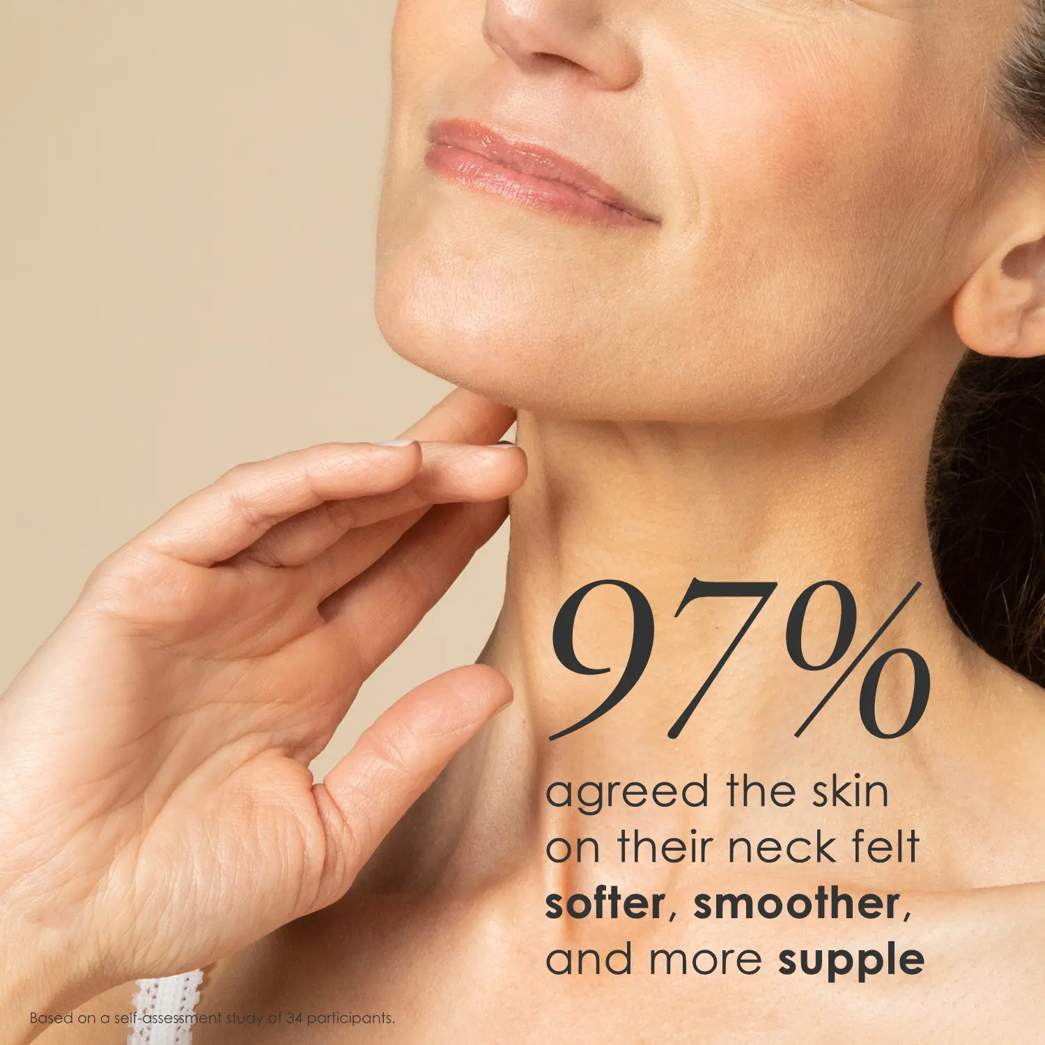 Firm, lift, and smooth your neck & décolleté! This lightweight, fast-absorbing serum reduces crepiness, fine lines, and sagging skin while keeping it hydrated and nourished. Perfect for daily anti-aging care!