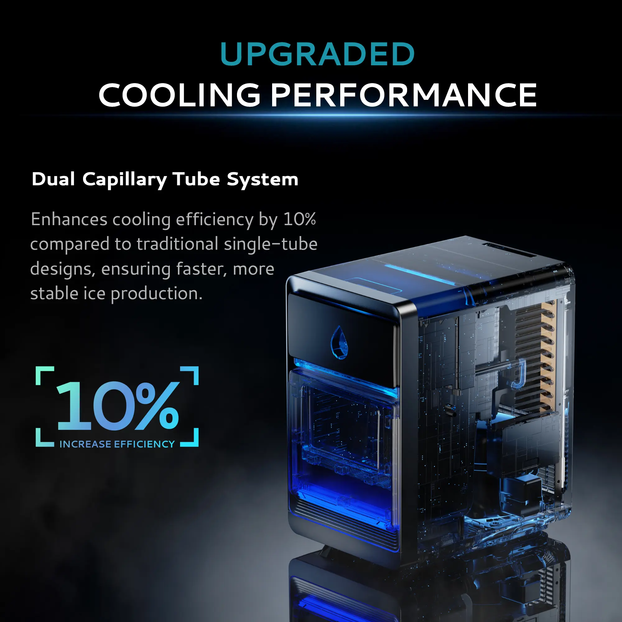 ·16 pieces in 12 minutes**: Produces about 120g (0.26 lbs) per cycle, doubling production speed for efficiency. Enjoy a steady supply of premium ice for entertaining or daily refreshment.