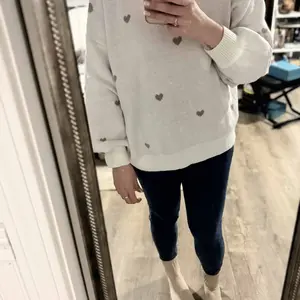 I was going to try and save this sweater and outfit for Valentine’s Day, but I couldn’t help myself and wore it to church today and received so many compliments. I’m 5’6.5” and 130 lbs and went with the S and it fits perfectly. The sleeves are even long enough for my long arms. LOVE