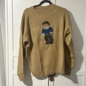 I love love love this sweater. It is very well made and the bear is actually embroidered the pants on the bear are actually corduroy. I would highly recommend this sweater if you like the polo bear merchandise you will love this sweater.