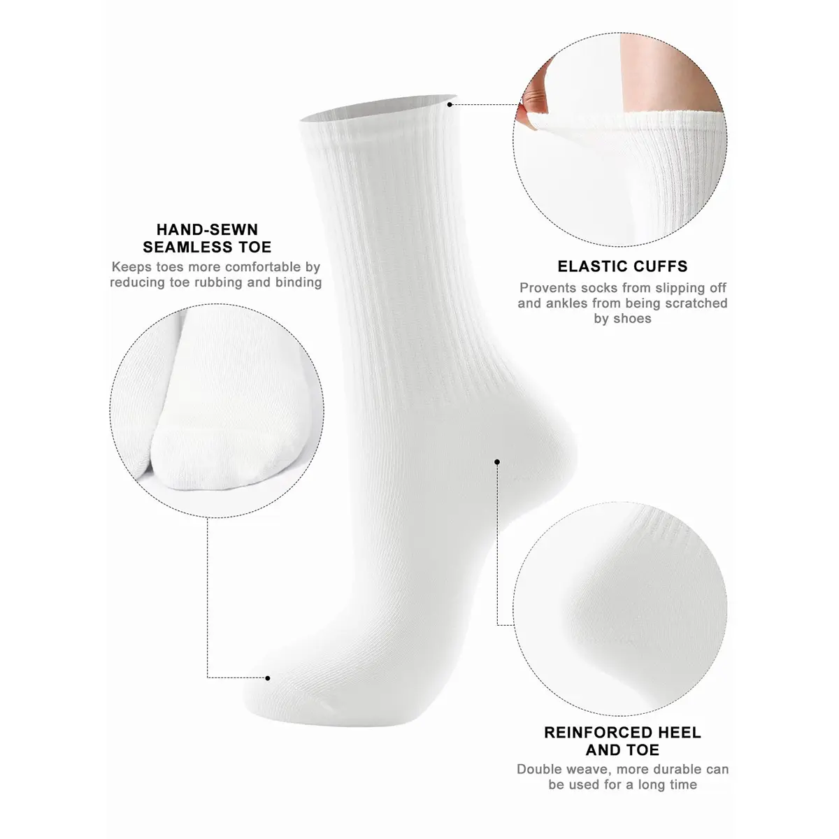 [SUITABLE SIZE] These crew socks for women are free size, suitable for most women. These white socks for women have very good elasticity, comfortable to fit your feet but will not strangle your feet. These womens socks will give you all-round care.