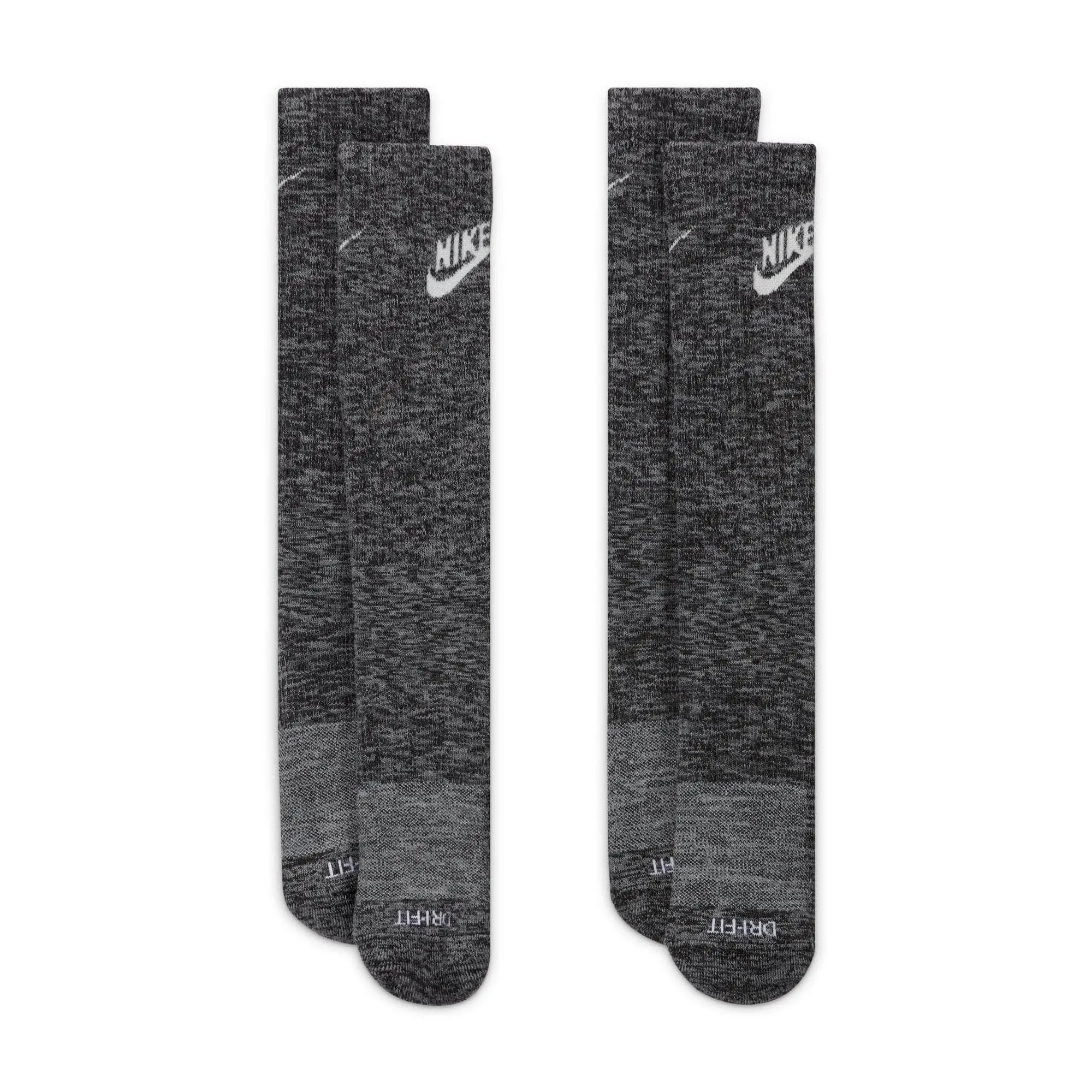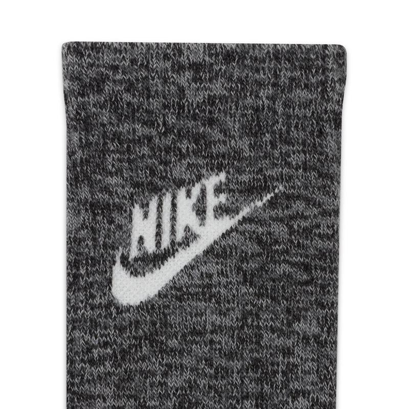 Style: DH3778-010 Color: BLACK/WHITE  Material: Polyester/Spandex/Nylon Details: WILDLY COMFORTABLE. As wild and outdoorsy as these socks look, they're actually just big softies. Their heathered, knit construction offers a trail-ready look and extra-cozy feel perfect for pairing with your favorite sandals, hiking boots and sneakers. Cushioning under the forefoot and heel helps soften the impact of your workout. Dri-FIT technology helps your feet stay dry and comfortable. Band around the arch feels snug and supportive. Breathable knit pattern on top adds ventilation. Reinforced heel and toe are made to last. More Details: