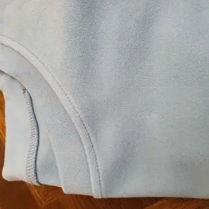 Material is like a velour, or velvet.. it's soft but not sweatshirt material. Arms are short too.. It collects every fuzzy and hair known to mankind.