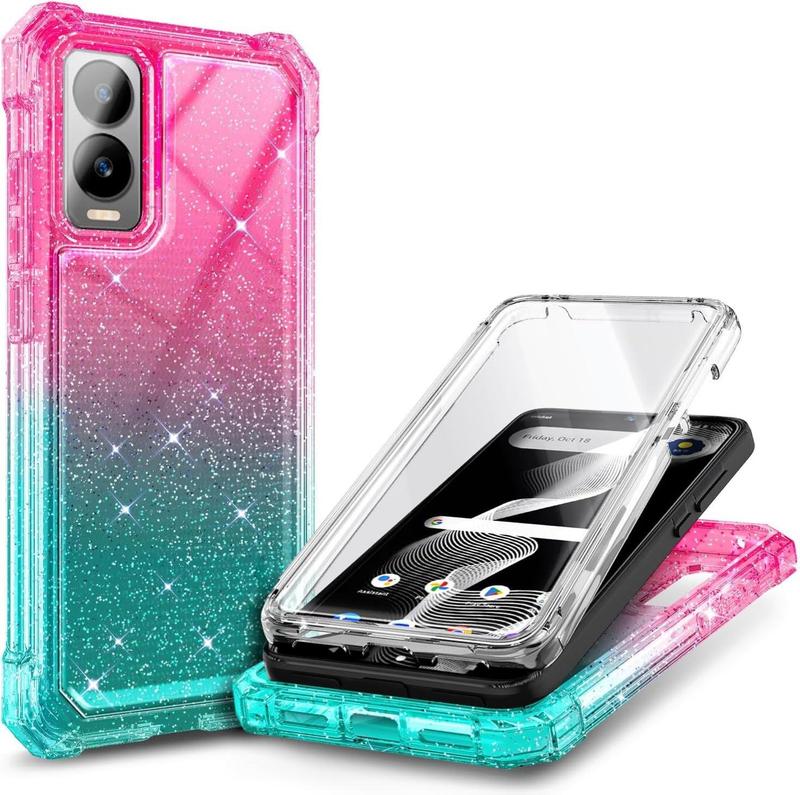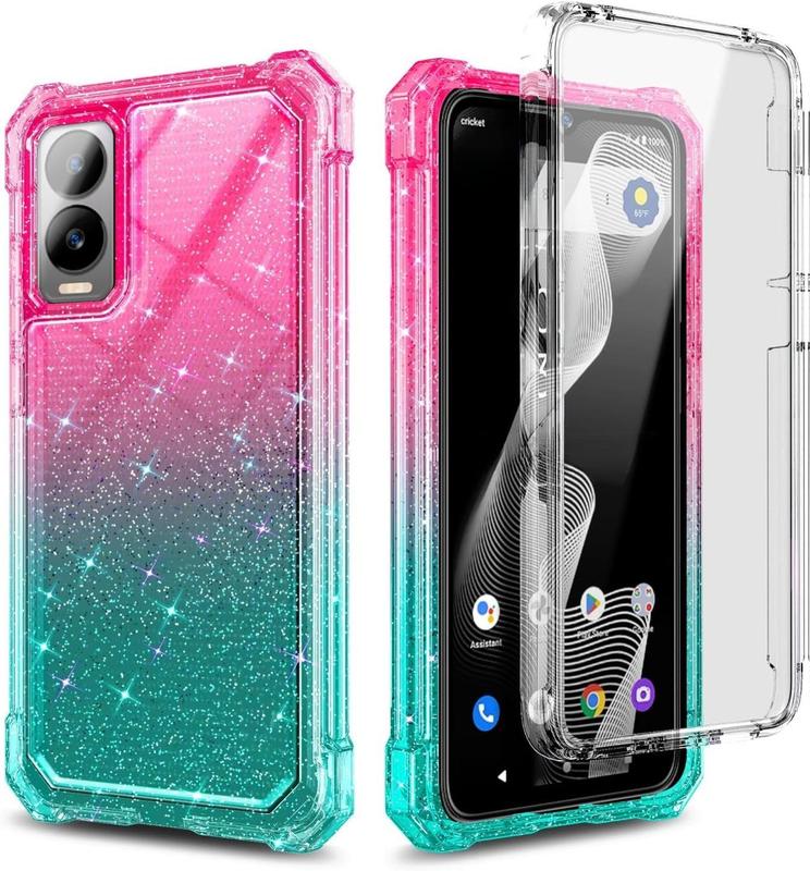 Ever worried about dropping your phone and cracking the screen? The Cricket Debut S3 Case with built-in screen protector is here to save your day—and your device! Designed for Cricket Debut S3 and AT&T Vista 2, this full-body bumper case offers military-grade drop protection up to 9 feet. That means your phone stays safe from accidental slips and bumps. The glittery Pink/Aqua finish adds a fun pop of color while the premium polycarbonate and TPU materials provide rugged durability without bulk. Plus, the case supports wireless charging, so you can juice up your phone without removing it. The reinforced frame and anti-scratch clear back keep your phone looking fresh, and the deep camera cutout protects your lens without blocking the flash. Inside the box, you get the shockproof bumper case with built-in screen protector ready to install. If you ever have questions or need help, just reach out—we’re committed to making sure you love your new phone case. Ready to protect your phone in style? Grab this glittery, tough case and keep your device safe every day!