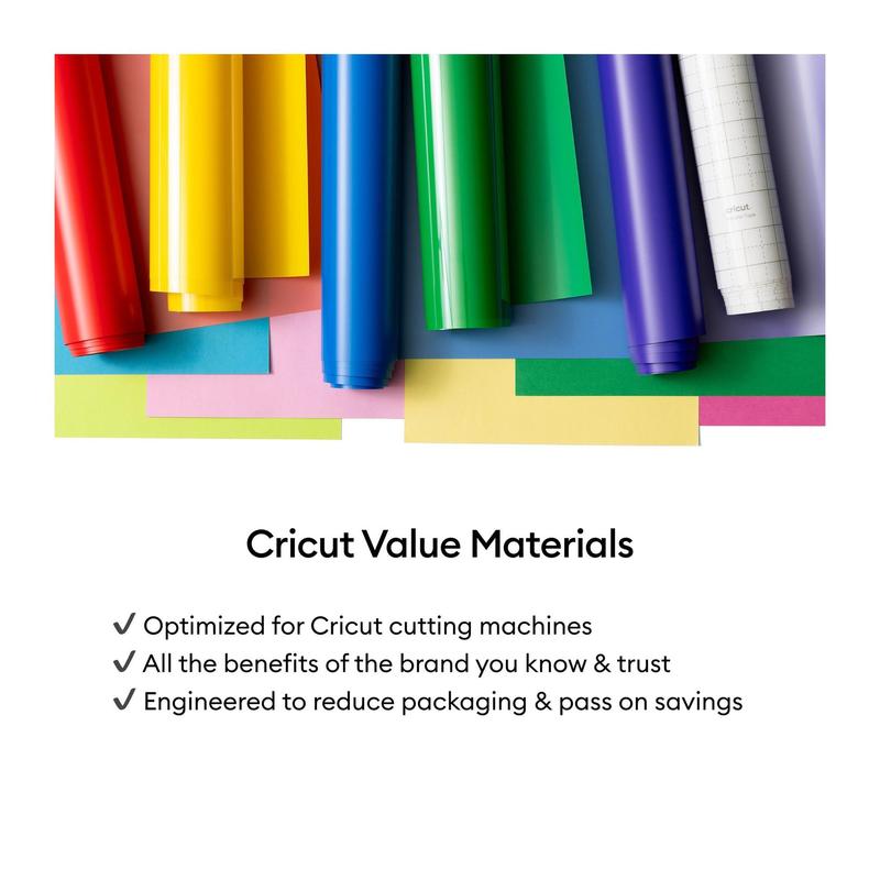 Easily bring your brightest craft ideas to life with this colorful sampler. It's all about effortless personalization with these versatile vinyl rolls, whether you're making decals, labels, or custom crafts. The user-friendly plastic backing makes cutting and weeding frustration-free, ensuring a smooth crafting experience. From Cricut.