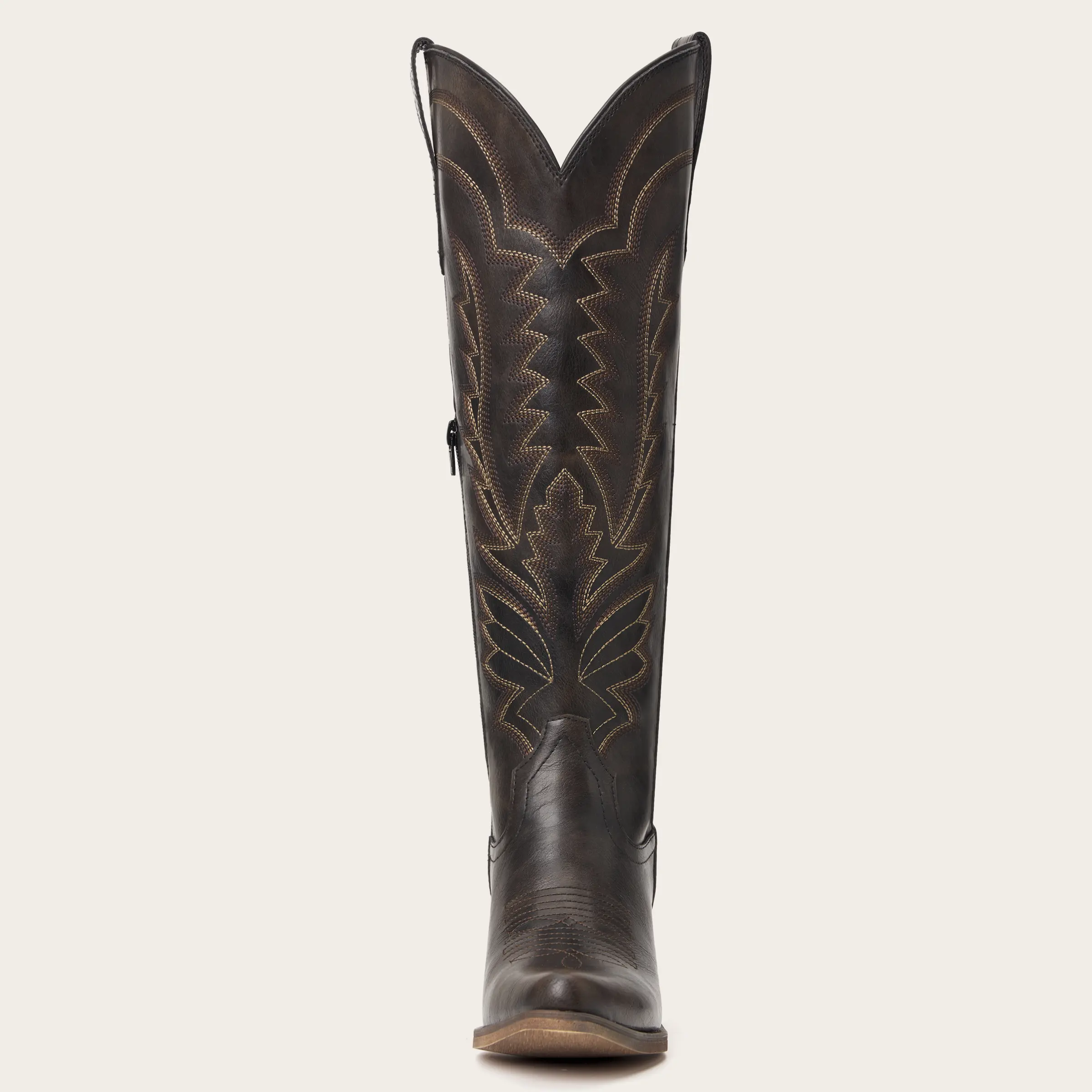 Beautiful, pictured perfectly! Unfortunately they are not even remotely wide calf friendly. Mine is maybe 15-17” and they wouldn’t budge