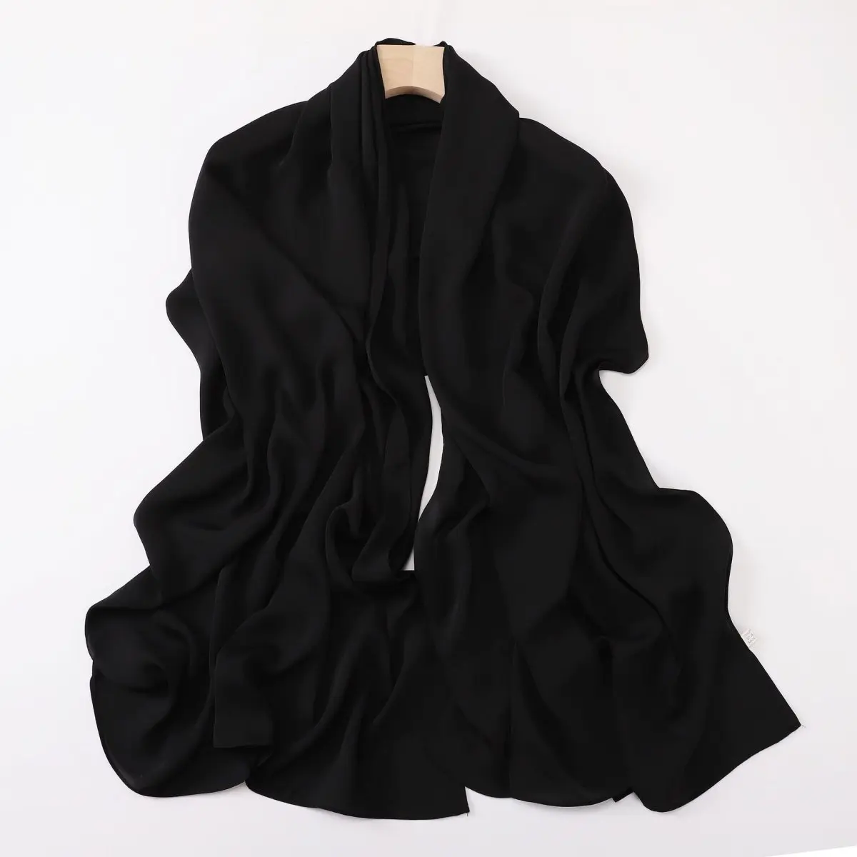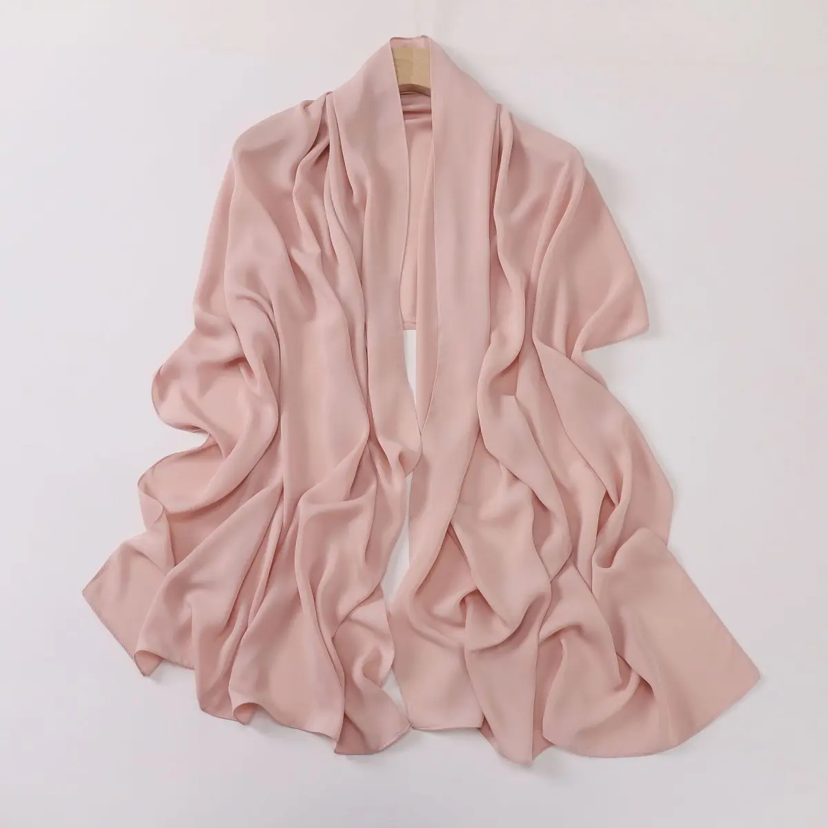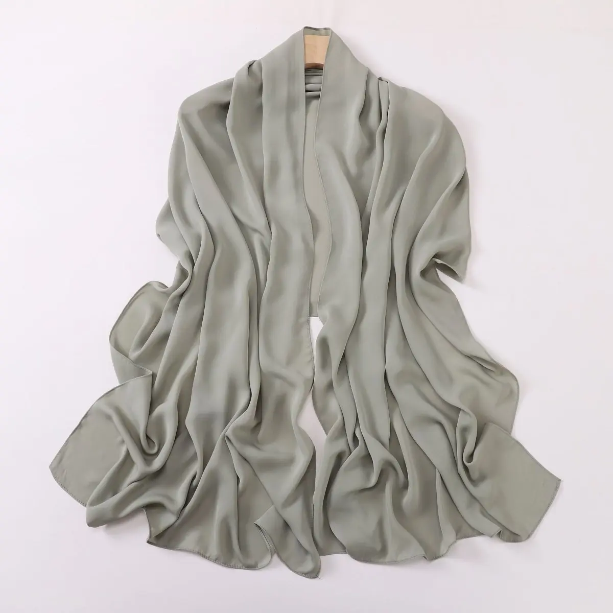 Experience the luxury of silk without the fuss with our GlideSilk Wrap, crafted from long fiber faux-silk fabric using traditional broken twill weaving for a featherlight, crinkle-resistant finish. This versatile piece keeps its polished look from dawn to dusk, blending modesty with effortless sophistication.