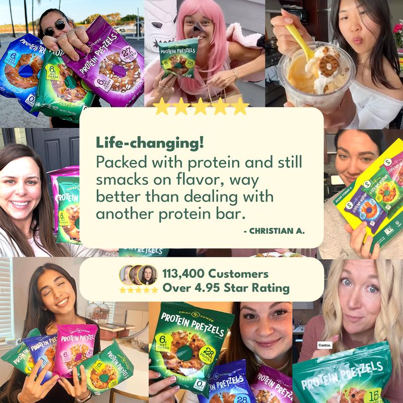 Indulge in the savory goodness of our pretzels and enjoy a crunchy snack that satisfies your cravings. Whether you prefer a tangy flavor or a salty crunch, our Crisp Power High Protein Pretzel Crisps are the perfect protein and flavor combination.