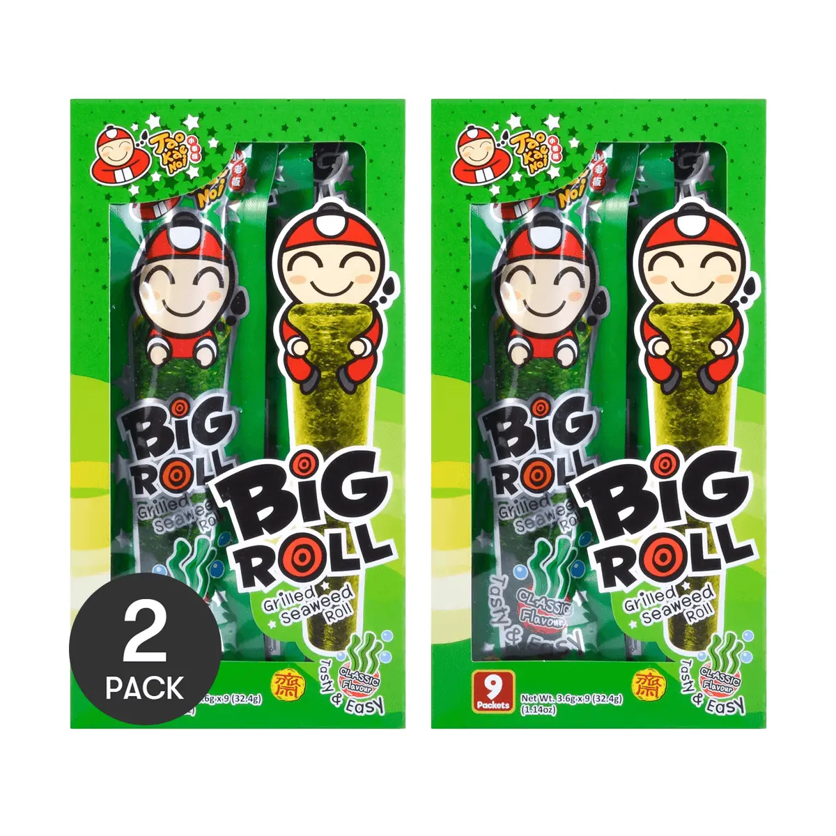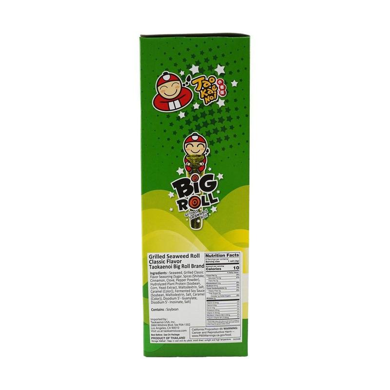 Experience the delicious taste of TAO KAE NOI Big Roll Crispy Seaweed Snacks. Each pack contains 9 perfectly rolled seaweed snacks, bursting with classic flavor that will satisfy your cravings!