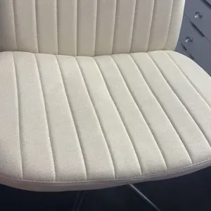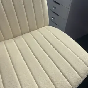 Looks just like the photo except it’s not as white. I knew it was beige but it looked like a more white beige on the screen while it’s a bit darker in person. I think overall it’s pretty good it’s super comfy and I got two one for my clients and one for my vanity. Wheels are super good as well.