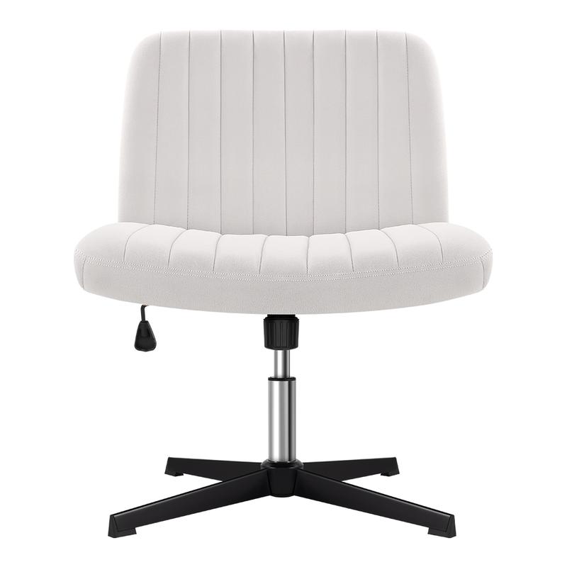 5. KKTONER Criss Cross Chair Armless Office Desk Chair No Wheels, Swivel Vanity Chair, Height Adjustable Wide Seat Computer Task Chair, Fabric Vanity Modern Home Chair White