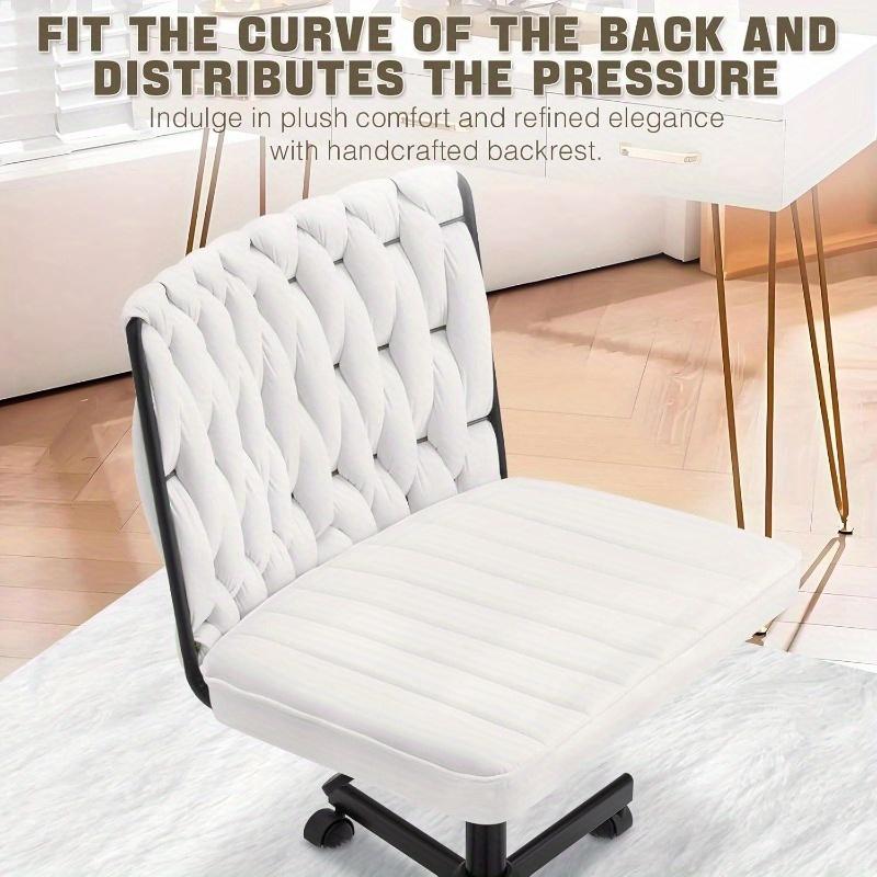 5. Criss Cross Desk Chair with Wheels, Extra Wide Armless Chair with Flannel Cushion, Adjustable Height & 135° Recline, Cross-Legged Office Chair for Home, Vanity, Study Room, White