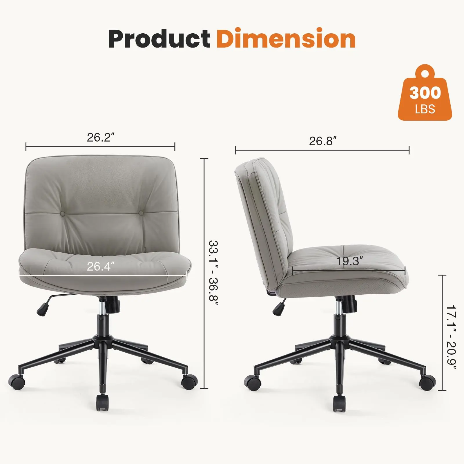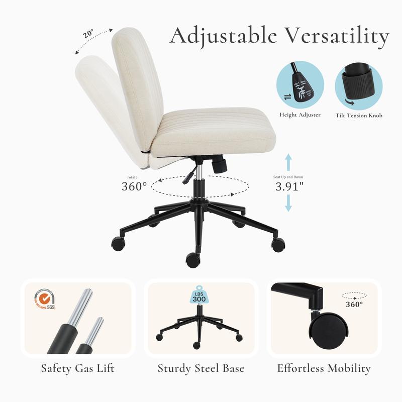 ·【Larger & Thicker Cushion】The cushion of the vanity chair measures 19.45" x 26", and the armless design and 26" seat width allows most people to sit cross-legged. The surface of the cushion is a high quality fabric that is skin-friendly and breathable. The seat can be adjusted from 19.6"-23.6" to fit a variety of table heights.