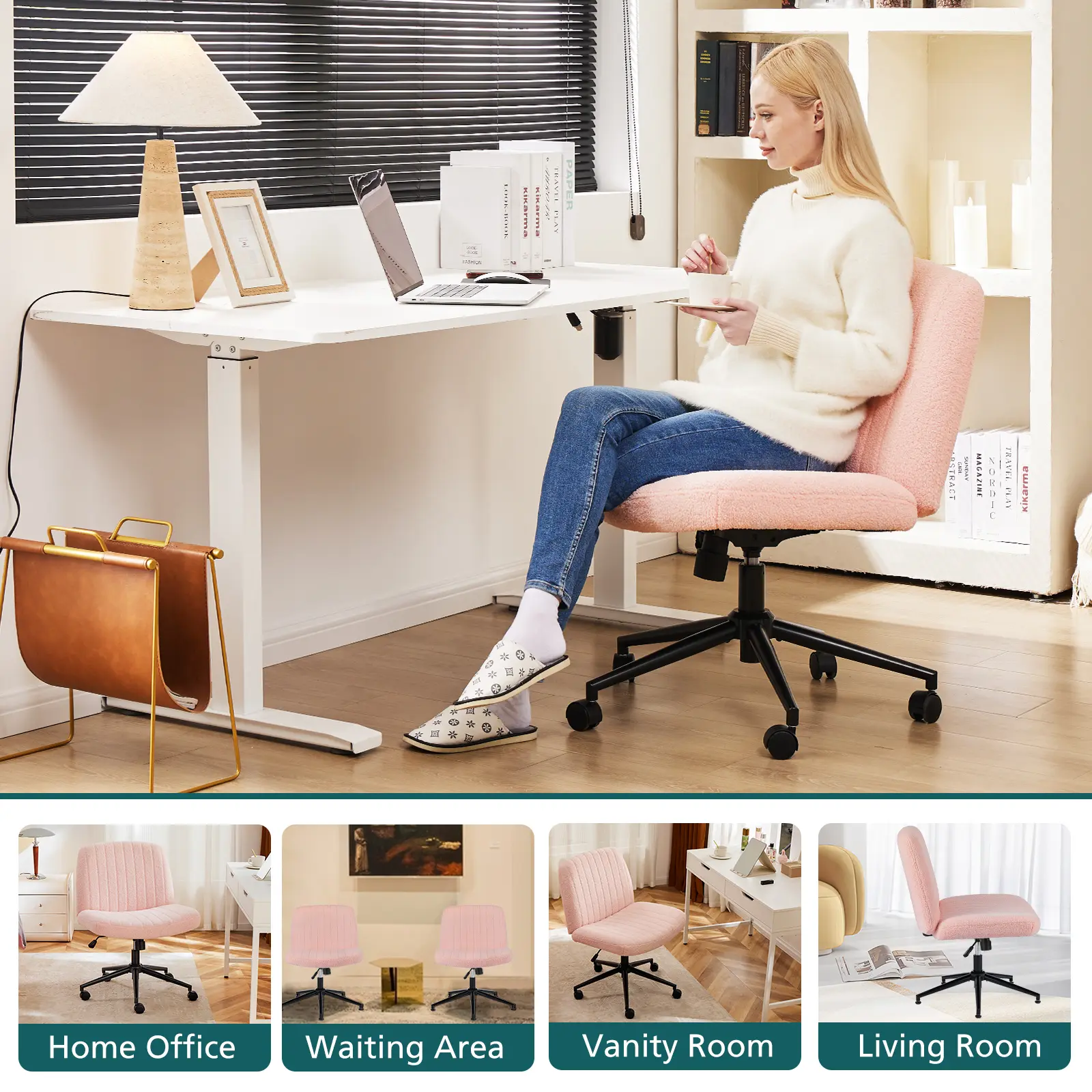 ·【Comfortable & Stylish】The backrest of the office chair completely fits the curves of the human and can provide sufficient lumbar support. The seat cushion and backrest are made of high-density sponge, which can perfectly relieve the pressure of prolonged sitting. The desk chair's design can be perfectly integrated with various decorations.
