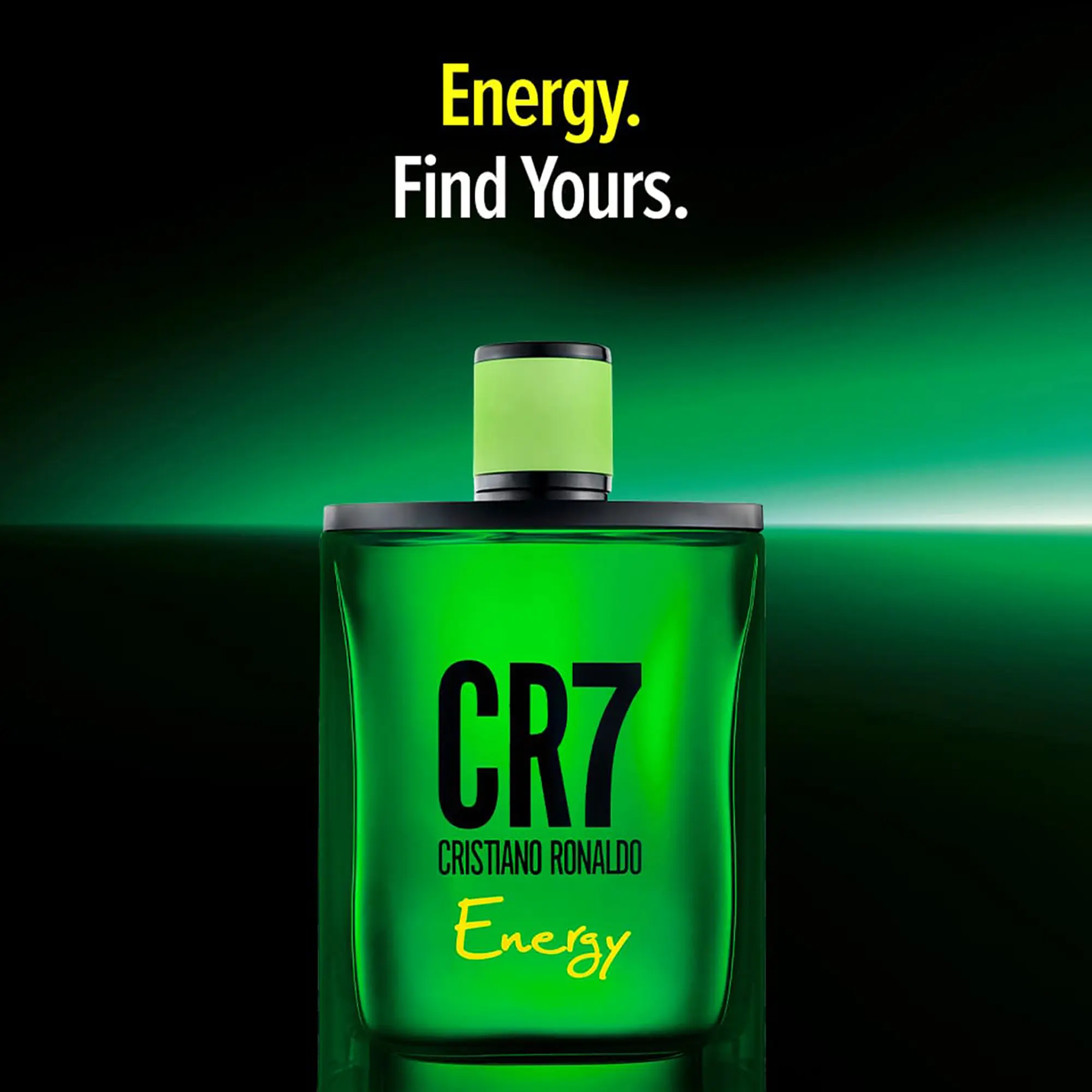 Cristiano Ronaldo CR7 Energy Eau de Toilette is a modern expression of movement, focus, and personal drive. Designed as a versatile mens cologne, it blends fresh green notes with aromatic and woody tones for a balanced, contemporary scent profile. Opening with green cardamom, ginger zest, and bergamot, it transitions into lavender and orange blossom before settling into cedarwood, patchouli, and moss. This fragrance fits seamlessly into the world of refined mens fragrances, offering a lighter alternative for those who enjoy structured compositions often found in eau de parfum men styles. Suitable for daily wear, it complements a wide range of routines and occasions. Among today’s mens colognes, CR7 Energy stands out for its fresh fougere woody green character and clean finish. Crafted for men who value style and consistency, this mens fragrance reflects confidence through simplicity and thoughtful composition.
