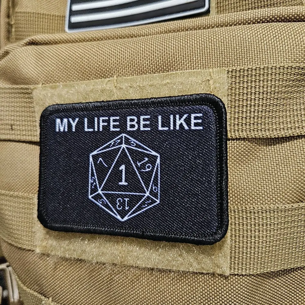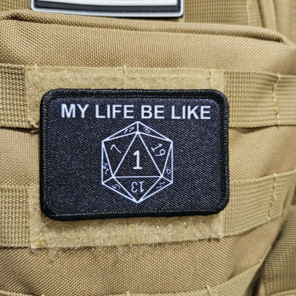 my life be like critical fail d20 dnd meme 2"x3" removable morale patch with hook and loop backing