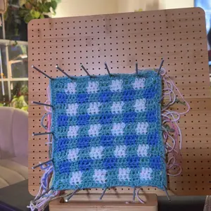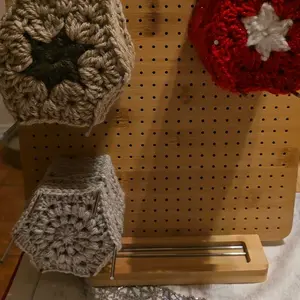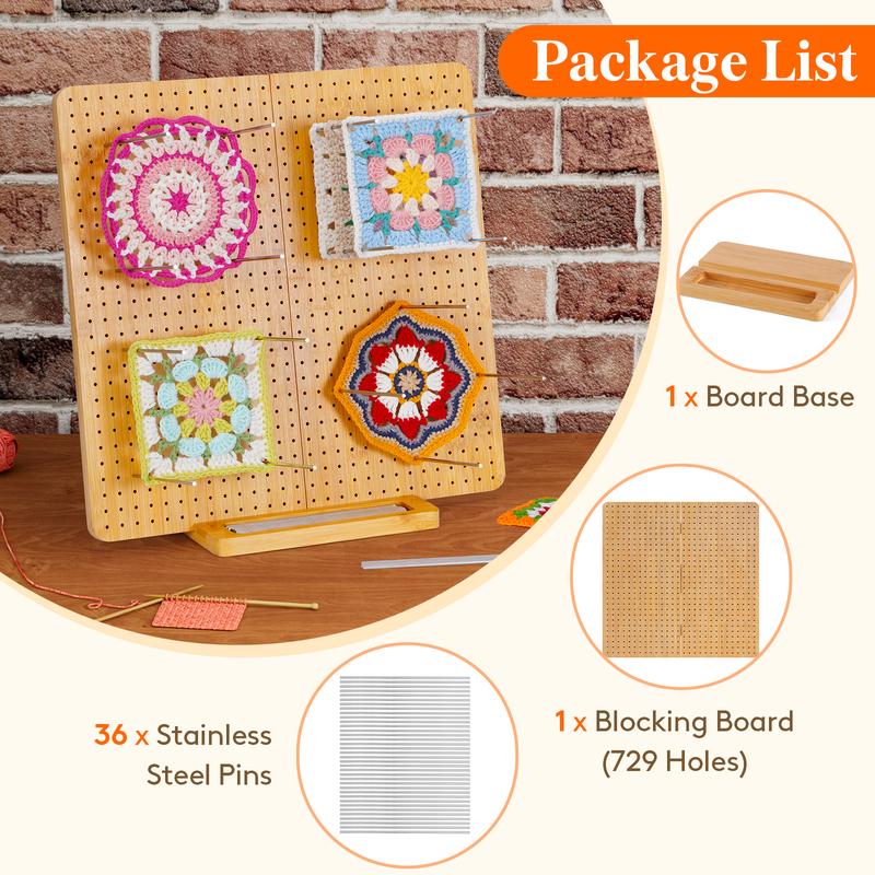 Uniformly aligned holes and perfectly fitting steel pegs make it an ideal tool for blocking granny squares.