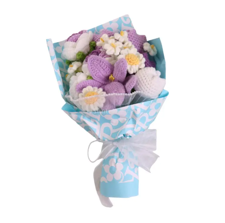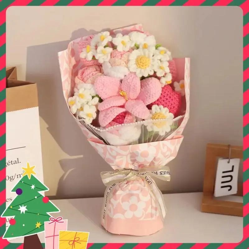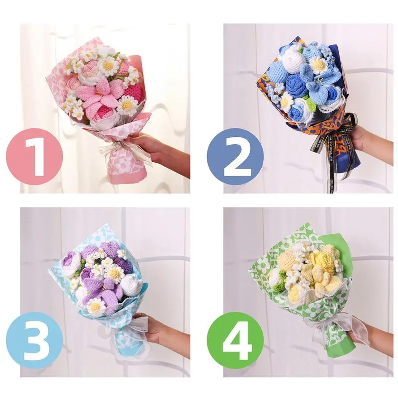 【Material】Handmade wrapped knitted flowers bouquet is made of crochet yarn, soft and wear resistant material