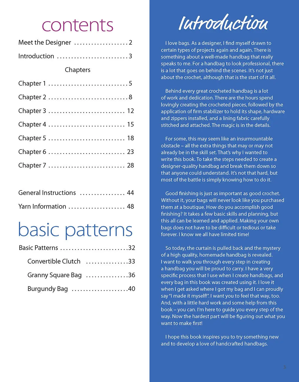 Leisure Arts Crochet Handcrafted Handbags Basic Book 1- Everything you need to know to make professional handbags. This beginner friendly crochet book includes a 31 page guide to purse making basics and 3 project patterns that can be made using simple crochet techniques. Purse-making guide covers: swatching, tools, yarn types, weaving ends, blocking, joining stitches, interfacing, lining, creating handles, attaching hardware and closures, special techniques and more. Projects include: convertible clutch, granny square bag and burgundy bag with leather base. Designs can be made using US size 4 worsted and 6 super bulky weight yarns and crochet hooks in sizes I-9, 5.5 millimeters, and M/N, 9 millimeters.