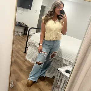The fit on this is so weird, it’s super wide and not at all flattering. It isn’t advertised as a crop vest yet lands an inch above my belly button. Button almost fell off when I tried it on. Yikes. Very much giving SpongeBob SquarePants vibes.
