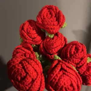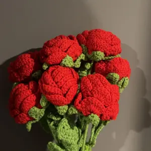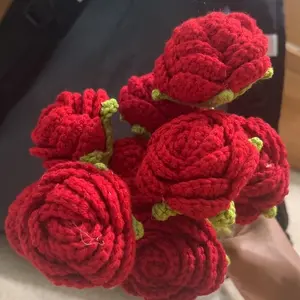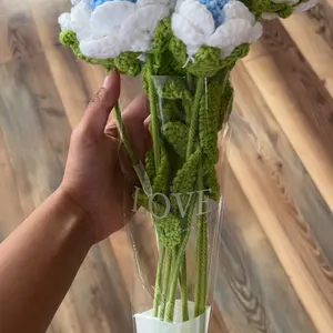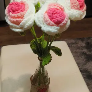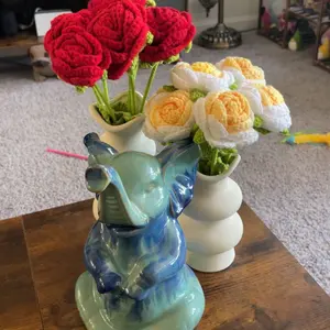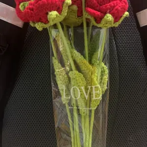 Beautiful crochet flowers! I bought them to split between my mom and 2 grandmothers for mother’s day, and they all loved them! They are great quality and look gorgeous. Only downside I see if having to unbend the stems when you receive them, but you can bend them back pretty straight. *bags included