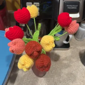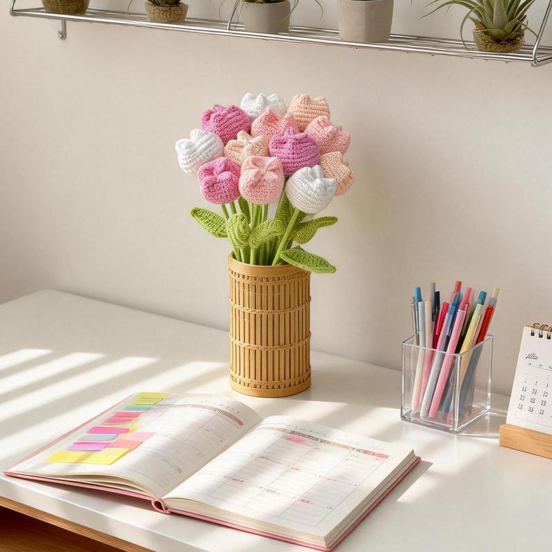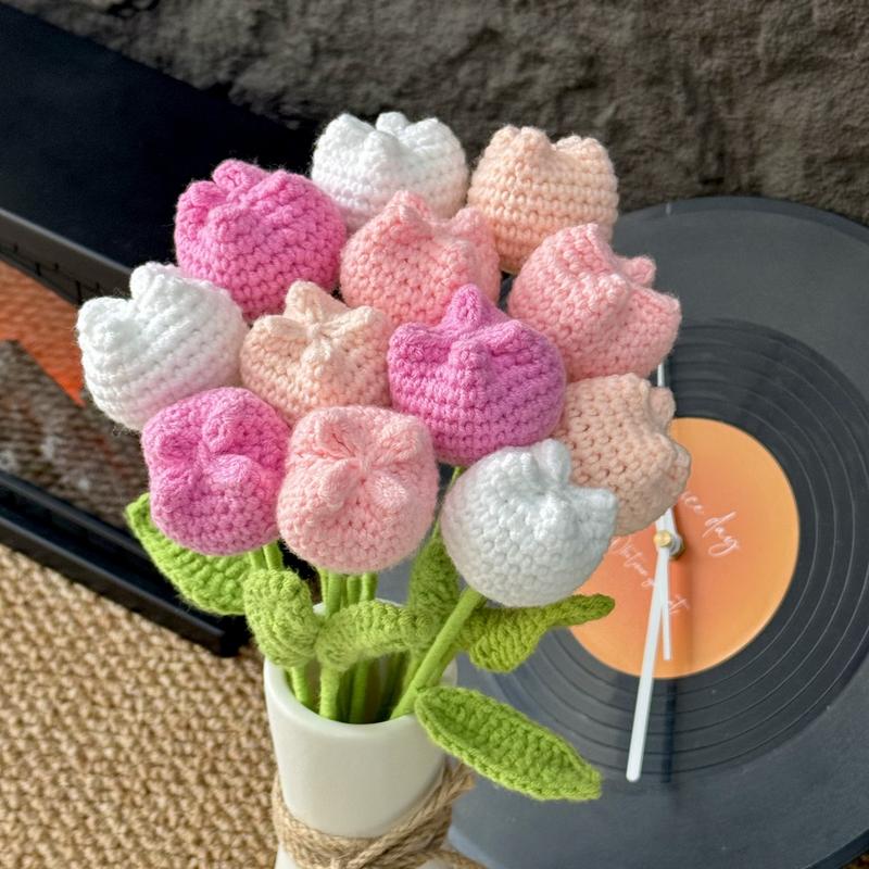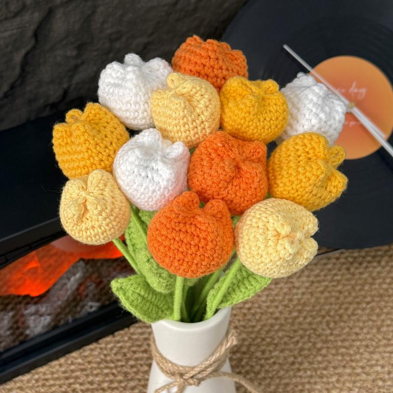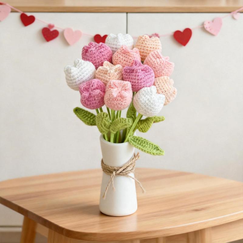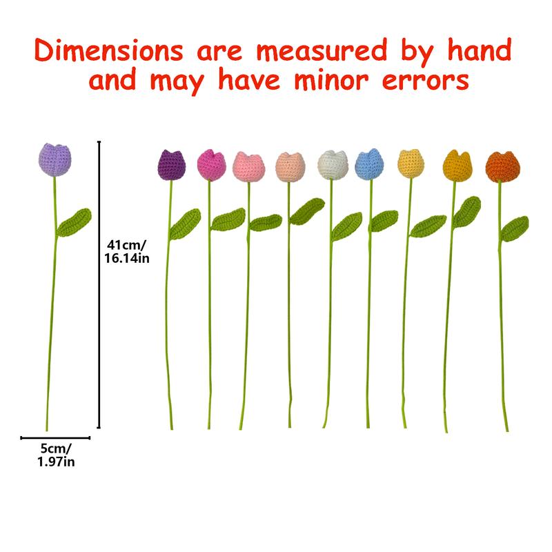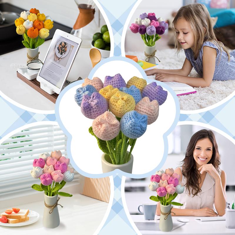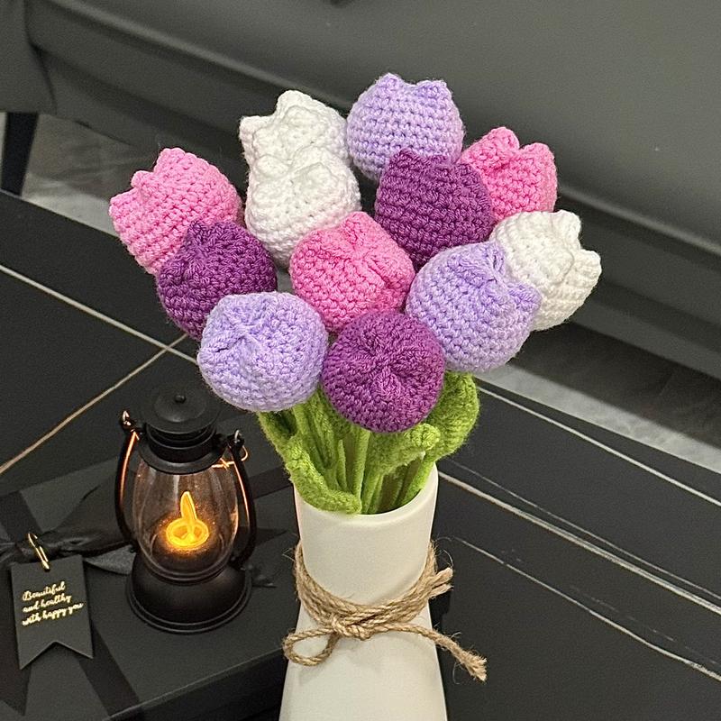 【Elevate Your Home's Elegance】: Transform your living space with the crochet tulip without vase set, featuring 12 exquisite artificial flowers in a variety of colors including baby pink, light yellow, purple, and multicolor, perfect for adding a touchof sophistication to your home decor.