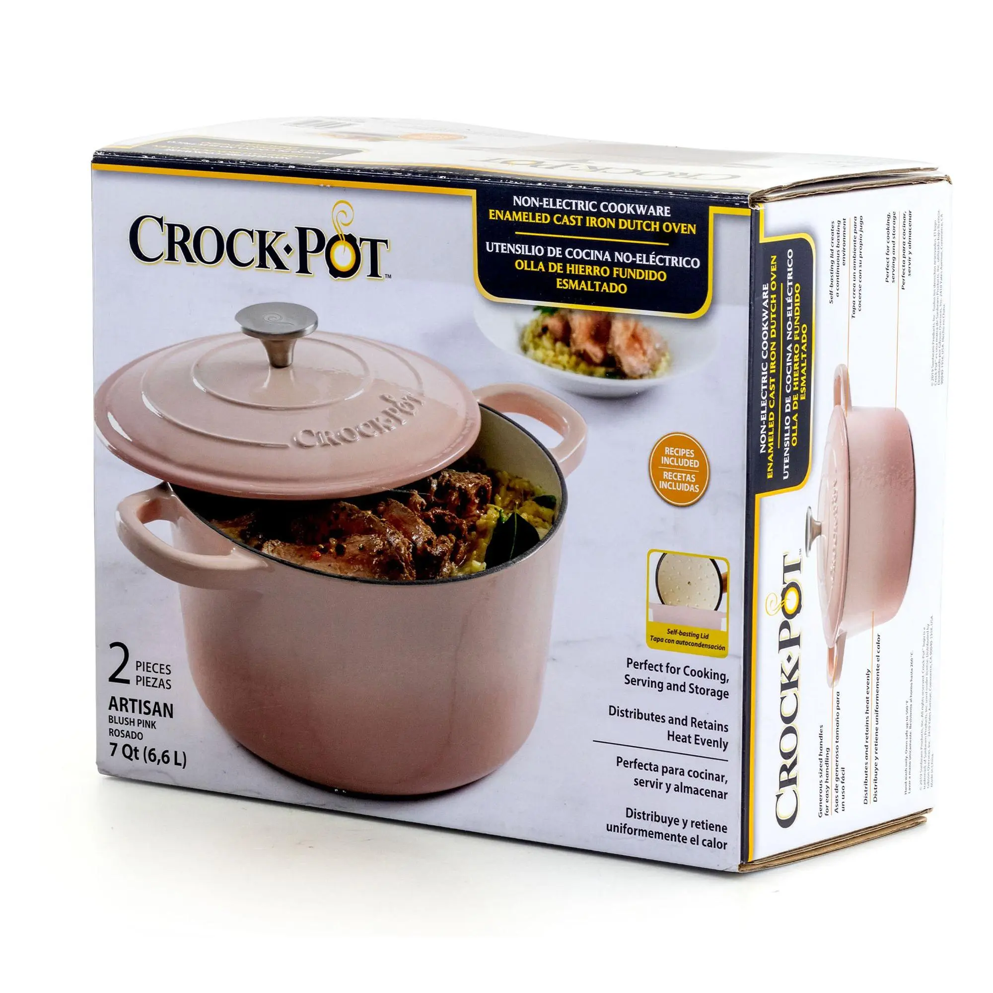 Color you and your kitchen happy when you cook with this 7-qt Artisan cast iron Dutch oven. The lid creates a continuous basting environment and the beautiful splash of color will look fantastic in any kitchen. From Crock-Pot.