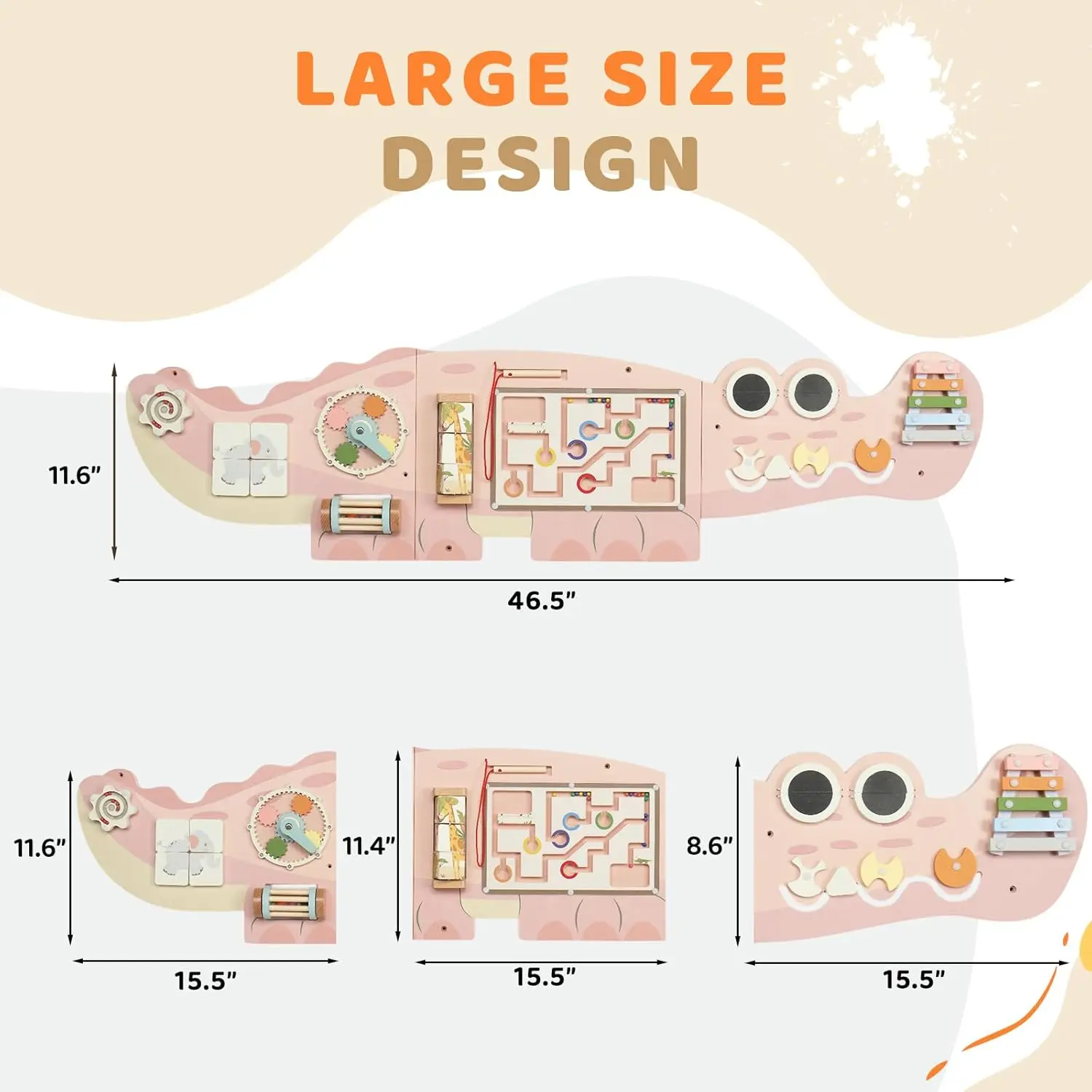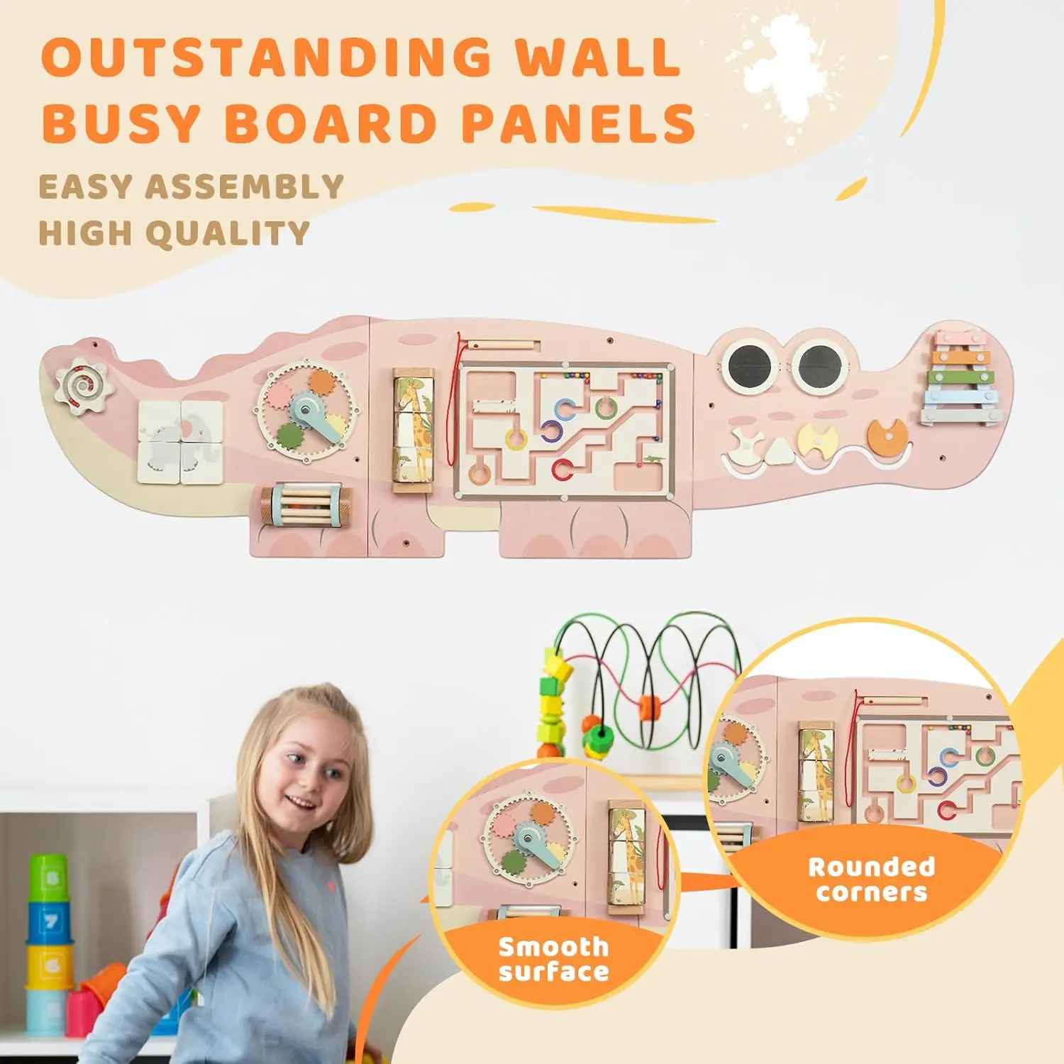 Sturdy & Safe Wooden Construction: Made from premium, eco-friendly wood, this crocodile-themed activity wall is durable, non-toxic, and built with smooth edges for safe play. It's perfect for toddlers aged 36 months and older.