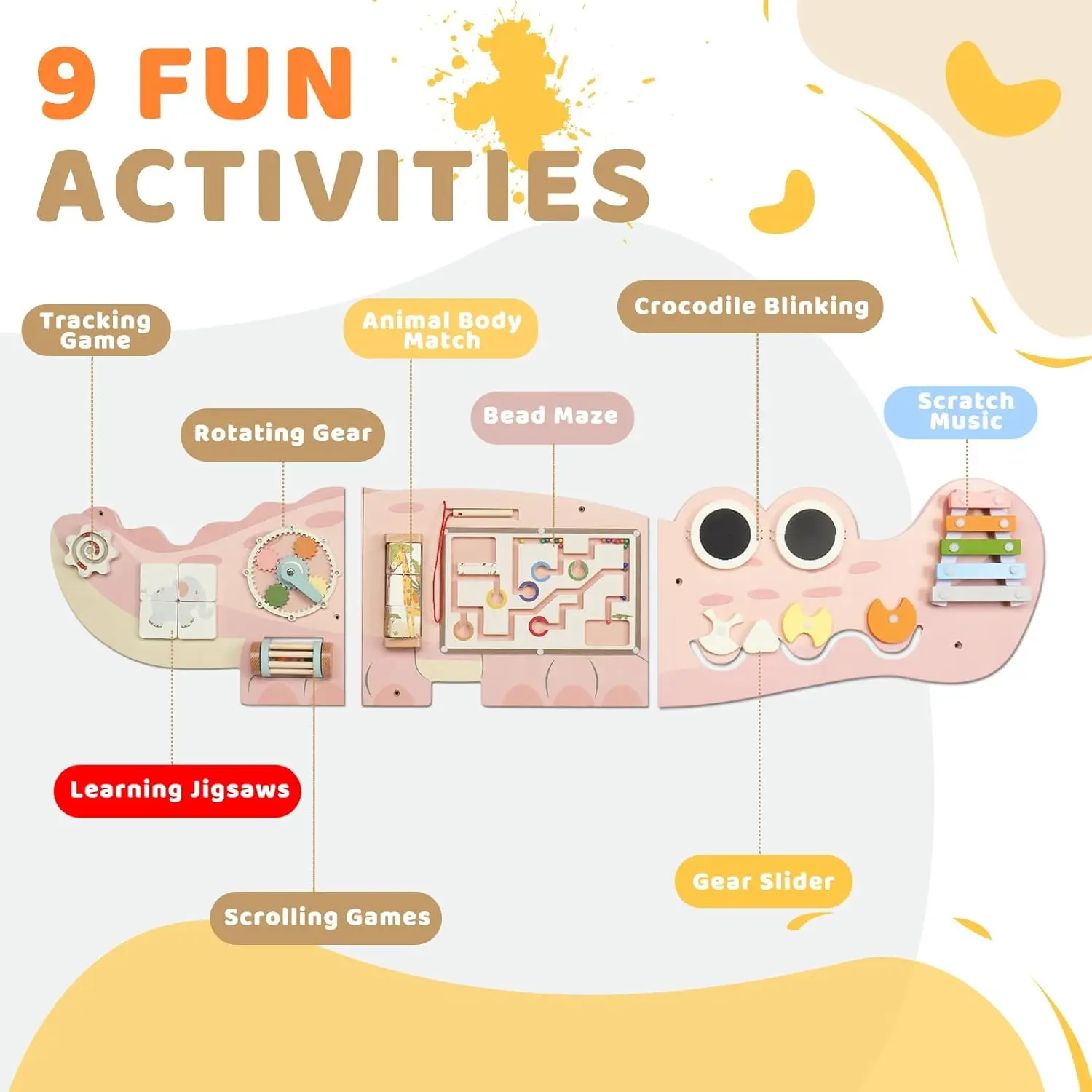Perfect Educational Gift for Boys & Girls: The JOYMOR Crocodile Activity Wall is an ideal gift for birthdays, holidays, or any special occasion, making it a thoughtful, educational, and entertaining choice for both boys and girls.