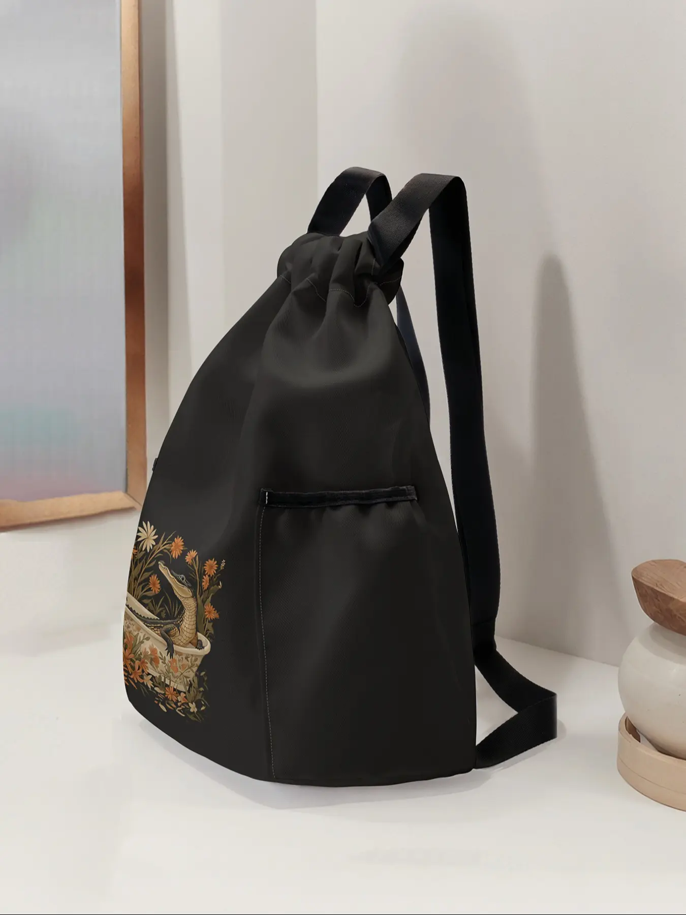 Crocodile Pattern Drawstring Backpack, Large Capacity Durable Gym Bag, Adjustable Straps, Sporty Beach Bag for Men & Women, Casual Sports Bag