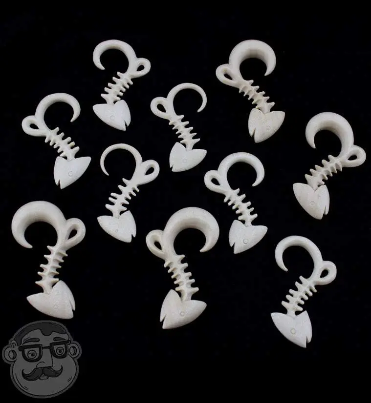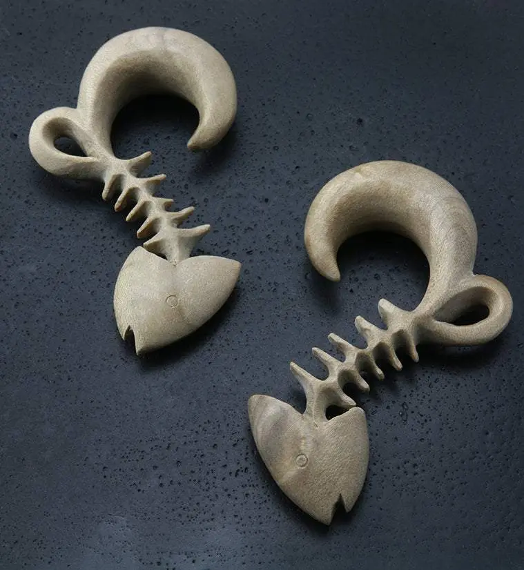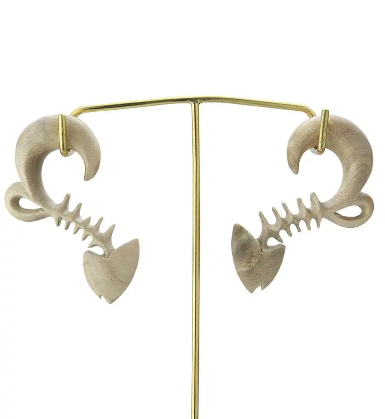 Made from crocodile wood, these unique hangers feature a carved fish bone design and come in a variety of sizes from 8G (3mm) to 1/2" (12mm). Each pair is one-of-a-kind, with its own unique pattern and color. Fun choice to add to your plug collection!