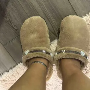 they really do come with the charms the foot part on inside is more like shepard material. threw out my old house slippers for these cuties and definitely worth it!