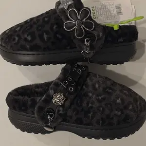 These leopard Crocs are EVERYTHING! 🖤🐆 Super soft, comfy, and they came with the gibbets already on them! I snagged them under $45 during a flash deal, and babyyy they were worth every penny. Stylish, warm, and perfect for everyday cozy vibes. 💯✨