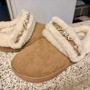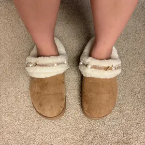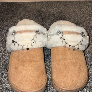 comfiest, cutest shoes in the entire world. Crocs knew what the heck they were doing with this one! i bought the gems separate on tik tok shop and they’re adorable. they came with the two chains, and cute sparkly bears, butterfly’s, pears, and snowflakes. Replacing my ugg moccasins this winter! lol