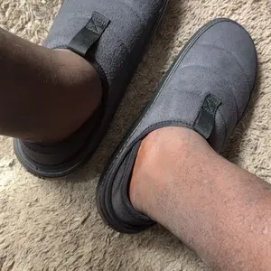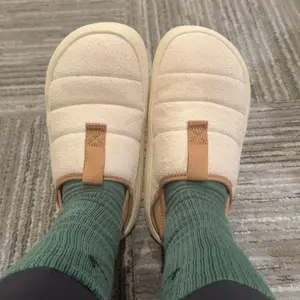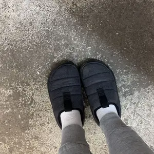 For real the best slippers that you can wear out of the house. Second pair, first one were the puffer material up top. I think both are similar but good build quality. EVA soul shapes to foot with wear. 10/10 shoe. Half sizes size down for a snug fit.