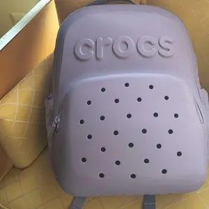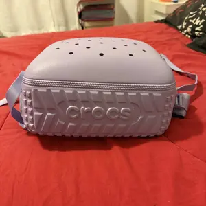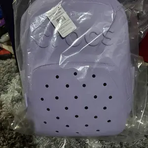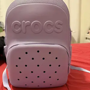Beautiful purple crocs backpack reminds me of spring and fresh flowers . The quality of the backpack is great . It’s very spacious you can put many items in it. Very durable material. This is my 4th purchase of the back pack. I bought my mom and son 1 and myself 2 definitely thinking of buying more