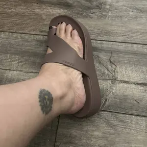 I got these in pink last month, loved them so much that I watched and waited for restock of truffle! When I’m not working in heels, I am in flip-flops - these feel fabulous, true to size and I love that they don’t get slippery when wet! True to size- I’m a 9 and they fit perfectly! 💯💯💯 recommend!