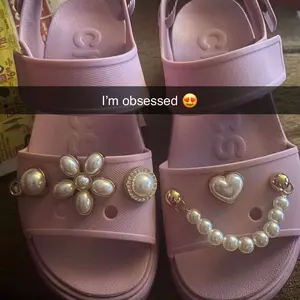 These are sooo cute with my pink Crocs!! The quality is amazing and they were super easy to attach to the Crocs! 🤍