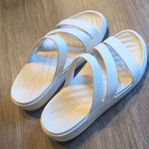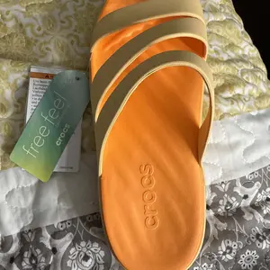 Love my new Croc sandals. They are so comfortable and cute!! I was afraid they might be big because I sized up to an 8 and I wear a 7 1/2, but fit perfect. I will add the top strap fits a little loose but still wear well and do not slip off. Did I mention they are comfortable. Get yourself a pair.