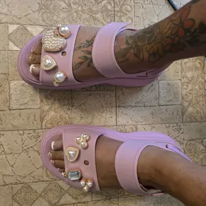 Love crocs. Got these for my bachelorette trip and dressed them up with some bows. I know I need a pedicure don’t judge me.