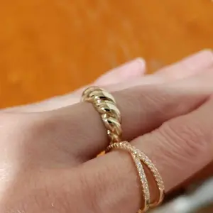 I love my Pavoi rings! The crossiant ring is the perfect mid chunky twist ring. Nicely smooth and polished. It's perfect. The size 6 fits my middle and pointer fingers on both hands. The size is accurate. Both rings in the pics are by Pavoi. This is my 1st purchase and I would totally buy more.