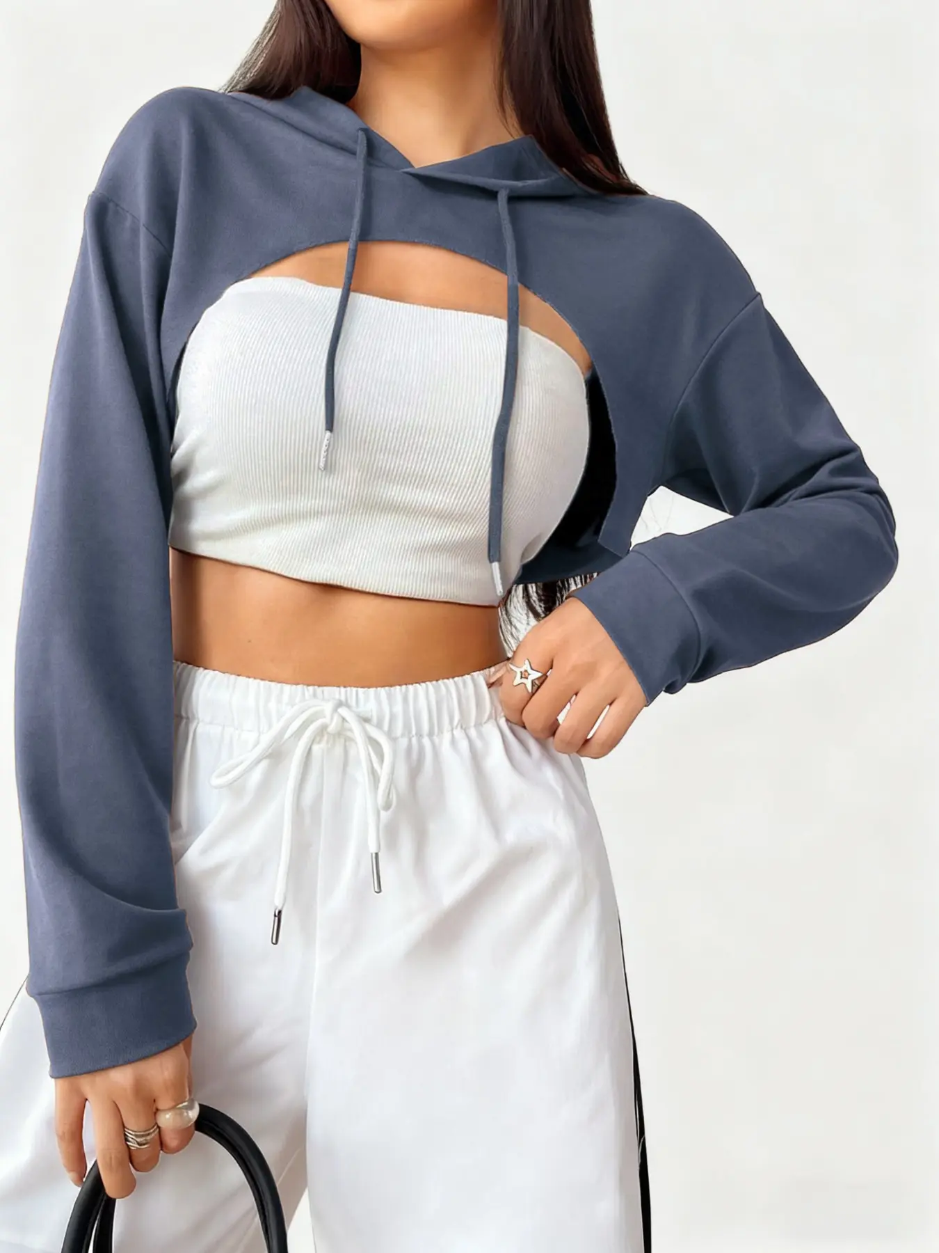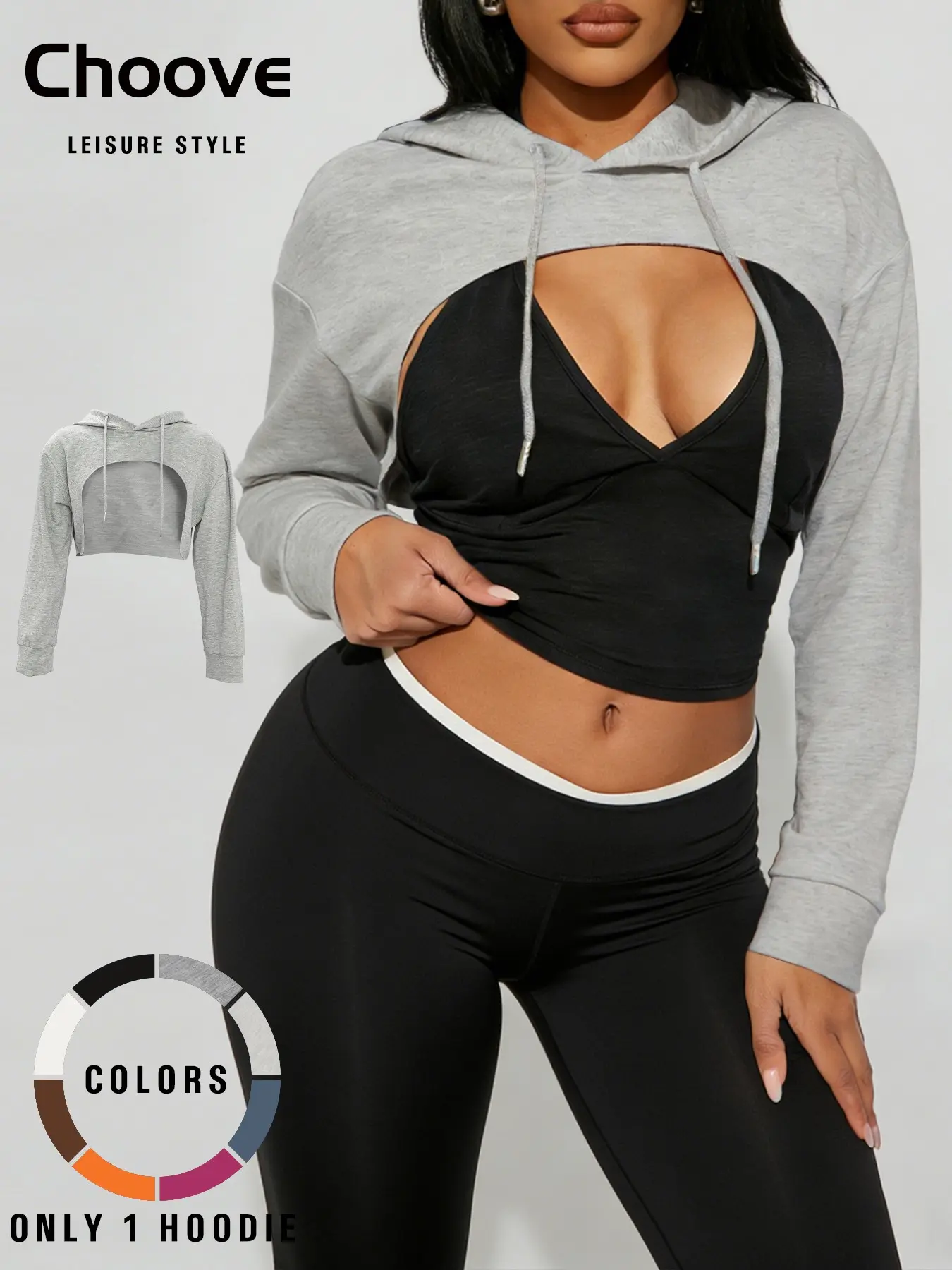 Women's Short Hooded Sweatshirt, Casual Loose-Fit Pullover, Thin Kint Fabric, All Seasons Wear, Versatile Layering Piece