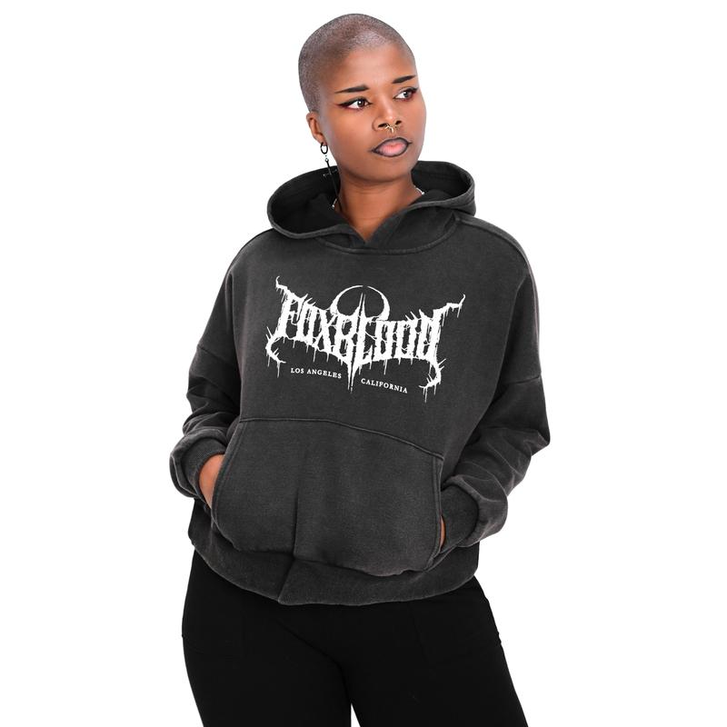 Oversized FOXBLOOD Crop Hoodie - Vintage Black
