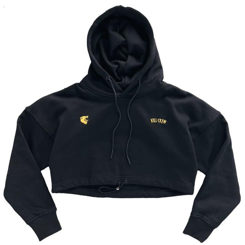 The adjustable crop hoodie features an elastic drawstring waist band. All logos are crafted with high quality embroidery for maximum durability and premium aesthetic.