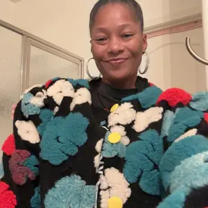 This sweater is cozy, bold, and beautifully unique, with vibrant floral textures that make any outfit pop. I paired it with my custom “Say Less, Pray More” hat, a faith-inspired piece I designed to remind us to lead with prayer.