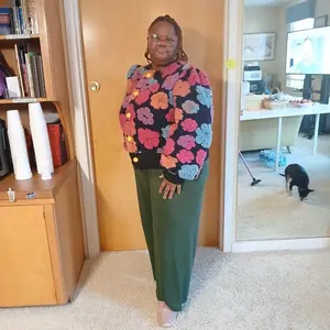 I love this jacket I got a lot of compliments when I wore it out last night I can’t wait to buy more colors it’s big girl friendly you can button it up but it looks better open I must say I’m very satisfied